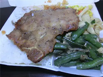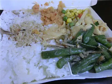 如果不知道吃什麼就會到這裡報到,在汐止這家店每天都會排隊,雖然賣的是簡單便當,然而憑藉著55元的銅板價也有很高知名度。炸排骨外帶似乎會因為碰到菜而沒有那麼脆和香,飯本來是粒粒分明也會比較濕潤了! 辣蘿蔔不和他要不一定會給,滷汁也是自己和老闆要的喔~筍絲我覺得做的入味又嫩,四季荳炒魚干四季荳有點太爛了~玉米今天的有點太爛有點可惜! 品質不致於太爛但每天的菜實在是不一定品質,要自己再看看再買!楊董排骨燒肉便當店 中興路160號