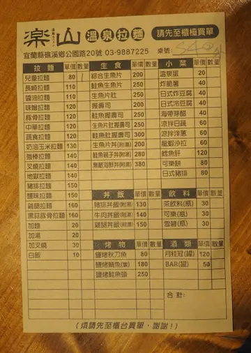 我記得第一次去樂山溫泉拉麵的時候是在一店,那時候還要排隊抽號碼牌,硬要搶外面泡腳的位子~(因為一店的泡腳的位子不多~)隔了好幾年,我們來到了樂山溫泉拉麵二店,這次沒有搶位子,我們反而是第一組到的客人~一店的水比較燙欸!二店的說可以說是微涼的水而已…邊泡邊覺得"皎冷筍"~這裡就是二店啦~對面都是住家,不像一店外面都是賣名產或其他家商店的氛圍~這裡有一些泡腳需知,大家可以參考一下哦~要坐裡面外面都可以,都有位子~這裡就是泡腳的位子啦~很乾淨哦~可以坐不少人!只是二店的水,那天不知道是不是因為剛開店,水是涼的~ 這裡有他們的營業時間哦!大家也可以參考一下!menu也幫大家拍到了~大家也可以看看!不過還是依店家的為主哦!他們如果有今日料理,也會寫在小黑板上~覺得帶小朋友不方便坐外頭的也有裡頭不吹風的位子~因為我們是坐泡腳區,會多收10元的清潔費/1人~然後這個擦腳巾也是他們會附上的,我個人覺得蠻貼心的內~生魚片丼,200元~我個人不吃生魚片的,是森森點的~所以口感好不好,我不清楚哦~日式炸豆腐,50元!我個人超愛炸豆腐,各式的豆腐都很愛~只要店家有,我就會點來吃!他們的偏嫩的那種,應該會有人愛有人不愛~我個人是覺得ok~豬排叉燒拉麵,200元~豬排趁熱的時候趕快吃,我個人不太愛它泡在水裡太久~吃的我個人都覺得尚可接受~久久來玩吃一次,還可以~以上是我的分享!喜歡的幫我推推…查看更多