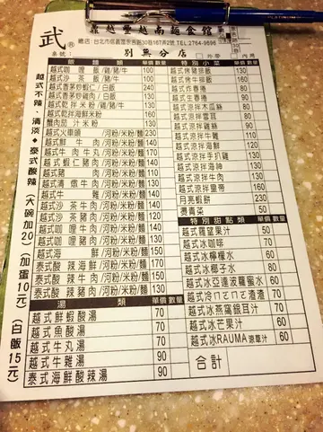 市府站周邊可不是每間貴三三,位於統一時代百貨正對面巷子有一家泰式越式飄香的老店,說起在市府站走跳夠資深的人一定都認識武鼎越豐,光是一碗不到百元的海鮮湯就可以吃到兩尾大蝦超澎湃食材,不難想像每到用餐時間排隊的人潮總是不會間斷每次來到武鼎越豐,不用問點什麼因為菜單看順眼的直接點,不用怕踩雷這次照片沒拍到的生春捲和炸春捲也很好吃!!武鼎越豐提供非常豐富的泰式料理和越南菜,泰越料理最大不同,是越南菜比較清爽,味道酸、甜為主,泰國菜運用較多香料,味道酸辣為主,還有一個說法辨識是~越南菜使用大量香草和魚露越式牛肉牛丸 河粉  NT.170真的非常大碗!!越南菜中的香料都是新鮮的植物,在市面上也比較常見有香茅、薄荷、芫荽、羅勒以及青檸等沸騰的牛肉高湯裡放入事先煮好的牛肉,再放入細白的河粉,放入薄薄的生牛肉片和切細的牛百葉,撒上蔥花和細細的洋蔥絲,撒一把香菜碎、九層塔埋進湯裡,最後擠入青檸檬汁同事和我個別點了泰式酸辣湯,差別是裡面有沒有麵線由於我就是小鳥胃,太大碗無福消受很可惜,泰式酸辣海鮮麵  NT.170泰式酸辣湯  NT.90沒看錯!!真的很大份啊而且湯頭蒸騰的熱氣帶出各種香料味,馥郁濃香立刻俘虜你!泰式冰RAUMA涼草汁  NT.60這個味道太奇妙,只能說喝起來挺解膩的,但不能說好喝哈哈哈哈整體來說,一吃就讓人好喜歡的店,由於公司離得太近,兩週至少會來一趟,推薦給也到市政府站找不到美食的你~查看更多