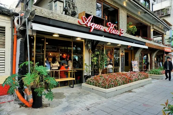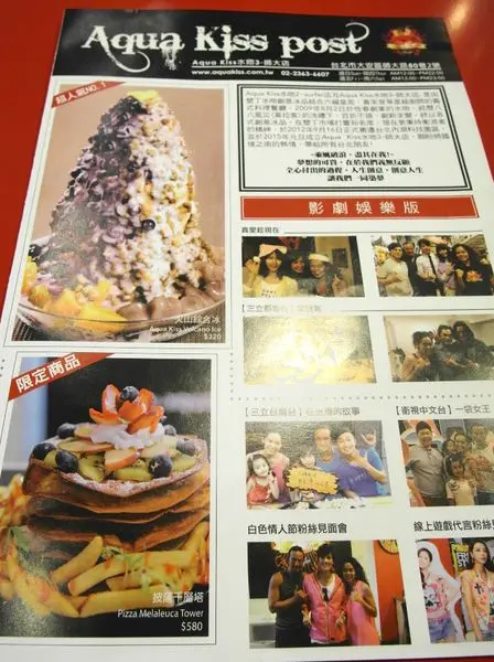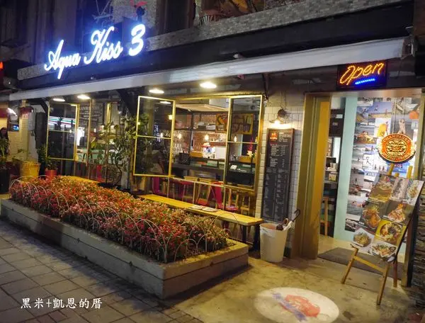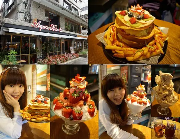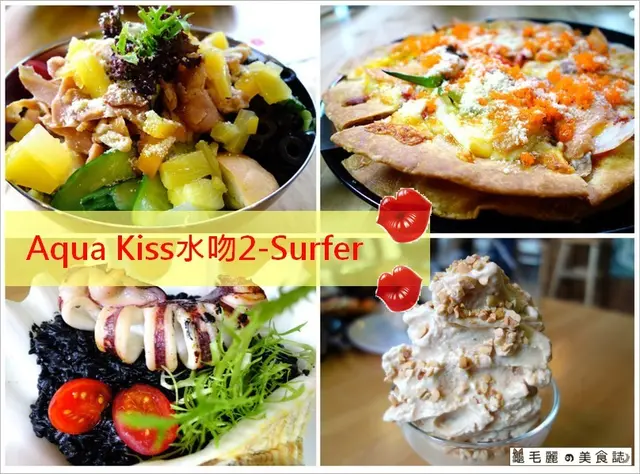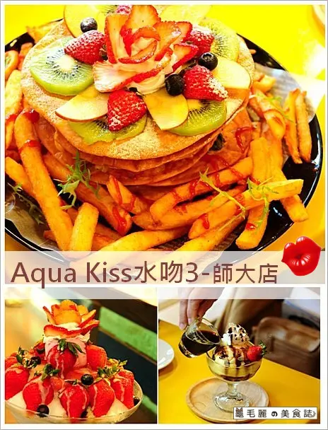 知道 ☀Aqua Kiss水吻 ☀這間超有特色的餐廳很久啦~之前常常假日想去內湖店用餐但是生意都好的不得了從來沒機會插旗這次小菲趁著師大店剛開幕沒多久~知道的人還不多時趕快來用餐果然每道餐點都是份量十足又頗具創意呢!!泥看看首圖這美麗的披薩千層塔是不是太犯規啦!!!這可是只有☀Aqua Kiss水吻3 (師大店)☀才有的限定版美食喔~~ ☀Aqua Kiss水吻3 (師大店)☀位於師大夜市附近從捷運台電大樓站3號出口步行過來大約3~5分鐘的時間這一整排的餐廳都好有異國風情~看到這盛開的小花圃心情都好了起來!餐廳門口就是一個小公園~我說這地理位置也太好了吧!!天氣好小人如果在餐廳裡坐不住~馬上就有地方可以放生~真是不錯XD來自墾丁的☀Aqua Kiss水吻☀原本是主打創意冰品來到台北開設分店之後又增加了許多一系列西式餐點而且都頗受好評唷! 門口就有大大的MENU看板可以參考一進門就可以感受到國境之南的熱情~這面牆上的照片是老闆一家人的生活寫真~~看的奔郎都想衝墾丁了阿!!!餐廳內部延續了內湖店的LOFT工業風~斑駁的水泥牆、鎢絲燈泡等工業風不可或缺的元素通通沒缺席繽紛的色彩搭配讓整體有點美式小酒館的氛圍L型的餐廳空間主要是以兩人桌為主~如果人多的話就建議坐在吧檯或是像我們一樣用兩張小圓桌併桌雖然有點可惜沒有兒童座椅~還好阿球今天在我們吃飯的時候從頭到尾都睡得很好讓媽媽可以安心吃飯和拍照XD就連餐巾紙上都有唇印~好可愛喔!我們一坐定服務生就幫我們送上水杯~話說這水杯也太豪邁了~是要讓我們拚酒用的嗎 看完環境之後馬上就來看MENU囉!!!☀Aqua Kiss水吻3 (師大店)☀的餐點選擇還不少~有沙拉、披薩、燉飯、義大利麵、甜點等從NT100~580不等~以師大商圈來說算是中等價位他們家的MENU真的很引人犯罪阿~~看到這超豪華的創意冰品照片應該很難不手癢點來吃看看吧!哈哈 不只偶像劇選在水吻內湖店拍攝~~許多美食節目也都先後報導過☀Aqua Kiss水吻☀的美食和創意冰品果然是人氣餐廳來著阿!凱薩鮭魚沙拉NT250份量還不少的沙拉除了有麵包丁、切片番茄以及新鮮生菜之外還用肥厚香甜的燻鮭魚做成了一朵朵的小花底下的蘿蔓生菜新鮮又脆口~豪邁的撒上起司粉之後再淋上酸甜的凱薩醬~吃起來相當夠味小菲覺得這沙拉三個人分食差不多~當個開胃前菜剛剛好!草莓牛奶NT150現在還算草莓的季節~這杯應該用了不少草莓下去打~喝起來草莓香氣和奶香都超濃郁的~好好喝阿!!奇異果汁NT120小菲有特別問了一下服務生~這杯奇異果汁可是很有誠意的用了兩顆奇異果下去打的唷!義式海鮮燉飯NT330這道聽說是餐廳招牌~~當然要點來嘗鮮一下~泥看看泥看看~~這頓飯豐盛成這樣是不是太邪惡了點!!!半夜寫文是邊敲鍵盤邊流口水阿我~~~ 話說這燉飯一上桌小菲都看傻眼了~~老闆到底去哪找來這麼大的貝殼阿!而且拿起來超重的耶~~服務生都可以趁機練臂力了(誤XD)燉飯本身吃起來香滑可口奶香四溢~上方超彭湃的海鮮配料有淡菜、蛤蜊、鮮蝦和花枝用料實在又大方~難怪是店內招牌~還真是好吃呢!披薩千層塔(2人份+飲料)NT580接著上桌的就是水吻師大店限定菜色~~光看賣相就先加他個一百分的披薩千層塔!!! 空拍來一張~~第一層的水果口味披薩真是夢幻的好犯規喔!!正中央還用切片草莓擺出了一朵小花呢!!!來看一下側面照~~其實這道披薩千層塔所用的披薩餅皮吃起來還蠻像脆餅的跟一般我們想像會有部分口感較軟的披薩餅皮不太一樣除了最上方的水果卡士達醬披薩之外~底下的就全都是鹹口味的披薩一旁炸到外酥脆內鬆軟的薯條也好好吃喔!整體而言小菲最喜歡的是第一層的甜口味披薩(果然是螞蟻來著XD)酥脆的披薩餅皮上方舖滿了奇異果、草莓、蘋果和藍莓搭配著中間夾層爽口不膩的香甜卡士達醬一起入口真的很特別又相當美味第二層的配料有燻雞、洋蔥、番茄和起司第三層的配料則是以蔬菜為主~加入了蘿蔓、青椒、甜椒等~營養滿分 是說我們完全沒想到水吻的餐點份量會這麼足吃完兩道主菜爺孫倆人就飽到去外面小公園消耗體力了!哈哈剛好來用餐的這天天氣好熱~飯後當然是需要來個冰品消消暑!看menu上我們點的水果冰似乎會點上仙女棒~小菲趕緊在冰上桌之前叫吳小弟進來看放煙火啦!超級水果之星NT350雖然光看圖片就有心理準備了~但是看到實際送上桌的這一大碗公冰還是忍不住讚嘆了一下!!實在是太澎派了~~ 店員等我們相機準備好~吳小弟就觀賞位置之後就將仙女棒給點燃啦~~ 每年大概只有過年期間會買仙女棒來玩一下~~沒想到現在就連吃個冰都這麼有噱頭耶!!不要說小朋友啦~~就連大人我們看到這畫面都忍不住嘴角飛揚心情大好呢! 這一大碗的超級水果之星最底下是淋上自家熬煮黑糖水的剉冰加上了甜滋滋的草莓果醬之後再放上三球冰淇淋三大球的冰淇淋分別是香草、鳳梨以及草莓問了一下服務生這冰淇淋的品牌~很特別的是全部由泰國進口的唷~吃起來相當綿滑細緻~除了冰的份量十足之外~水果也是給的不手軟~有蘋果、奇異果、藍莓、香蕉和草莓切片等當然水果會依季節不同而有所改變唷!話說吳小弟每次只要一吃冰就是這個酸梅臉~是怎麼這麼好笑啦!哈 可愛又熱情的老闆娘平常都是在內湖店居多~這天一直到我們用完餐準備要離開才來到師大店她強力推薦下次一定要來嘗嘗看他們家的招牌~只要吃過