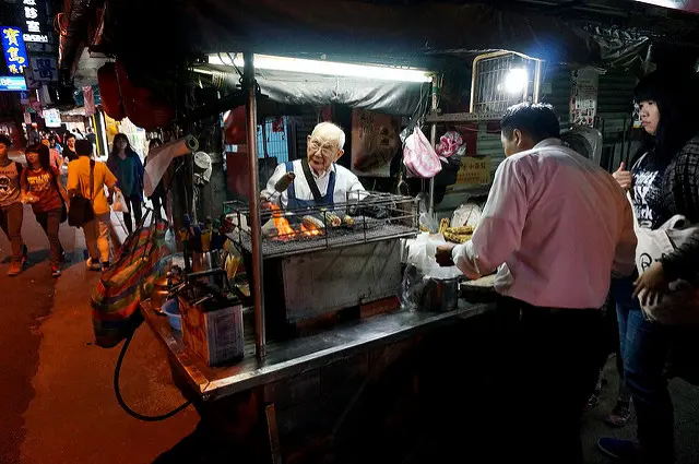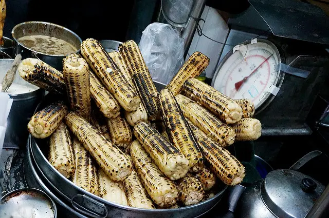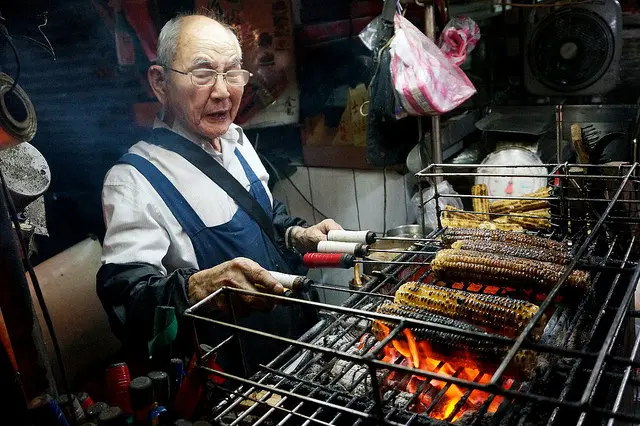 相信每個人心中都有一個難忘的記憶好味道,而我的小時美好回憶就是烤玉米記得小時候第一次從爸爸手上拿到熱騰騰香撲撲的炭烤玉米硬脆酥香的好味道就在我腦海裡埋下永不抹滅的記憶此後每當看見烤玉米的攤子,無論肚子飽不飽,都要來上一根只是近年來尋覓,總是找不到那時的美味感動,151總是說:愛吃買了又愛嫌是呀,對烤玉米不知為什麼總是很堅持,至今還未吃過達到心目中標準的烤玉米 某日,跟151到師大做頭髮,大約晚上九點多準備離開師大時無意間撇見頂好超市旁一攤小小的烤玉米攤,遠遠的就聞到炭烤的香味原來鼎鼎大名的是水柳伯烤玉米,之前曾經想買,不過好一陣子沒開這天巧遇水柳伯,說什麼也要來一根烤玉米解饞 隨意拿了根白糯米玉米,在等待的同時也跟水柳伯聊了幾句水柳伯說到:它的玉米都是精挑細選,只取最好的部位仔細一看,玉米都是拼接的,都是玉米肉質最飽滿的中段 雖然是稱重,但每根都是一樣大根,水柳伯也沒特別注意重量,似乎一律都是100元像這樣大尺寸的玉米,在其它地方少說要120元起跳!每根玉米事先都經過大火炭烤成黑乎乎的模樣,這也是古早味烤玉米的美味關鍵之一好吃的古早味烤玉米一定要用猛烈的炭火直烤烤的黑乎乎的,烤出有如爆米花般的香氣才算合格 關鍵之二:刷破只見水柳伯不斷的揮著鐵刷刷著玉米把烤的黑乎乎的表面用鐵刷刷破,再刷上特製的醬料這樣玉米才能充分吸收醬汁,吃起來也才更夠味!現在的烤玉米攤已經沒有人這樣做了,所以玉米總是吃起來不夠味 水柳伯真的很逗趣,烤著烤著顧聊天都忘了客人是哪隻烤玉米,要不要加辣要記得自己是哪隻烤玉米,最好自己先記住是哪個顏色的鐵叉我們就是紅色的鐵叉,水柳伯一直稱讚我們選的玉米是當天最漂亮的一根,呵呵 水柳伯不停的翻動著鐵網上的烤玉米,嘴巴也沒停過的一直聊天真的看不出來已經是高齡80幾歲的老人,真的相當的有活力呀 關鍵之三:刷蛋白這也是古早味芋米好吃的絕對關鍵之一因為玉米的外殼已經刷破,利用蛋白修補,在表面上形成一層脆皮的外殼 吃起來也會格外的酥香,也是古早味玉米好吃絕對絕對不可忽視的關鍵因為蛋白份量很難拿捏,經驗絕對占最多的比例,現在幾乎沒有人會這樣做了 再刷上最後一層獨門醬汁,我們的玉米也快大功告成囉! 拿到熱呼呼的烤玉米,玉米不斷的散發炭烤醬料的濃郁香氣還有類似爆米花的味道,這就是我小時記憶中烤玉米的味道! 再次吃到這樣的玉米真的很感動!硬脆的玉米吃起來超過癮的!直火炭烤的香氣無與倫比,玉米嚼勁十足,越咬越香只要吃上一口,絕對停不了口的一口氣嗑完我就這樣邊走邊啃著玉米走到停車場,連發動引擎都還捨不得放下手中的玉米!…查看更多