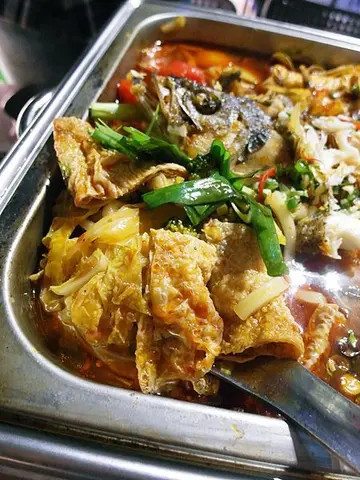 說真的到現在看到這一大盆?一大缸?一大鍋?我自己回憶起當天的震撼跟飽度還是歷歷在目這家氵酉卒bar我來好幾次了 跟同事跟家人跟朋友都來過之前來一定會點的就是牛排三重奏(流口水)店內的氣氛很適合多人來聚餐 每次來空間桌子擺設好像都會更動 這次來又跟上次來不一樣最喜歡的還是這桌啦 背景真的太吸睛了!菜單跟我們上次來也不一樣 現在還有單人餐 雙人餐可以選擇來這吃飯配點小酒很不錯 店裡也很多款可以選擇來之前三 人就已經決定好要點三國烤魚 然後本來想說再來個牛排三重奏問了一下店員 店員說:上次有四個人來吃最後還打包所以我們就先點了一個燻鮭魚凱薩沙拉XD【燻鮭魚凱薩沙拉】$200之前吃牛排三重奏就蠻喜歡他們的凱薩沙拉這次第一次換吃燻鮭魚 他們的凱薩沙拉醬給很多 生菜的量也很足 味道很夠不過燻鮭魚我們覺得吃起來沒有那麼搭 還是牛排凱薩沙拉略勝一籌吃完沙拉後不久 就看到兩位男店員端著一盆光看就知道很重的鐵容器要上桌來看看影片版本 一掀開三人整個超震撼給你滿滿的...大~魚~鍋~~~~店家精燉的麻辣湯頭裡面有完整大尾鱸魚 還有滿滿滿的配料哥說這好像去吃buffet會出現的料理傳說中三國烤魚源自於劉備、關羽、張飛桃園三結義時,特地聚集鄉中勇士,設宴讓大家大魚大肉痛快一番,那時剛好有位姓張的廚師負責烹飪,他用一手絕活炭火石鍋烤魚,漿烤好的魚放在石鍋中煨燉,醇和味養,鮮上加鮮,十分好吃,以致於當時酒肉過後的勇士士氣大振,劉備心中大喜,揮刀盟曰:“汝等烹飪有佳,當記頭功”。在劉備登基,特定石鍋烤魚為蜀國國菜,三國石鍋烤魚由此而來,而後則深受諸葛亮喜愛,成為軍中慰勞將士的一道佳餚。(轉自店家)鱸魚的魚肉肉質細緻鮮美 而且鱸魚又很營養刺也很好挑今天不是大口吃肉改大口吃魚看到上面滿滿的辣椒還有紅通通的湯頭 就知道有一定的辣度因為有放入玉米 番茄 菇類 洋蔥等等蔬菜的甜味 還有蛤蠣跟魚的鮮味所以喝起來不會死鹹 是順口微麻的辣度我是很能吃辣的人瞞可以接受的 哥稍微可以吃辣覺得有點辣 不能吃辣的朋友吃到整個滿頭大汗XD男生記得點白飯來配一下 非常下飯的一鍋切大片的洋蔥直接吃不會嗆 帶點甜味這鍋裡面我最喜歡的就是烏龍麵!!! 吸飽了湯頭的辣味跟精華吃起來Q談夠勁超過癮 男生主要吃飯 烏龍麵大概都我吃了寬粉也不錯我們喜歡的菇類也放了很多喔!!!高麗菜跟豆皮的量也很多 不過這兩樣都很吸辣 所以怕辣的人要斟酌一下啦另外我們一直奮鬥到最後吃超多還是覺得沒減少的火鍋料跟百頁豆腐蛤蠣飽滿鮮甜 一直往鍋裡撈還有沒有因為當天是幫朋友慶生 店家還招待了一罐日本的蘋果汁 整個就甘心A【後記】:來吃那麼多次了 這次新登場的三國烤魚真的很強大阿!!!光端上桌那個份量氣勢就夠驚人了旁邊桌的叔叔阿姨們看到都不斷地偷偷打量XD我們這次三個人吃那是因為我們食量蠻大的這份應該4-6人吃也沒問題除了牛排三重奏又多了一個選擇囉~…查看更多