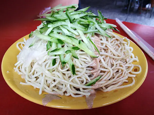 後山埤站老字號人氣涼麵-永吉涼麵吃了快十家的台北涼麵店,前幾次分享空軍涼麵後,網友一直推薦這家位於捷運後山埤站的老字號涼麵店永吉涼麵,永吉涼麵可以說是南港人氣美食之一,也是以大份量涼麵聞名,永吉涼麵的味道算是比較清爽帶有些鹹香,吃起來還蠻消暑解膩的,據說是許多日本觀光客會來朝聖的台北涼麵店,連店內的菜單都有日文版,就知道永吉涼麵有多紅了。南港人氣美食小吃永吉涼麵位置就在藍線捷運後山埤站,從後山埤站三號出口一出來就能看得到永吉涼麵,營業時間是從早上六點半到下午兩點半,差不多就是吃早餐跟午餐的時間,店內的空間以台北涼麵店來說算大的,雖然也是一般麵攤的用餐環境,但我覺得寬敞多了,環境也看起來乾淨許多,桌上擺有辣醬、哇沙米跟醋可以使用。永吉涼麵菜單價格竟然有日文菜單永吉涼麵店內主打的原味涼麵分成三種份量價格,分別是小份35元、中份45元與大份55元,一般點中份應該就可以吃很飽,另外永吉涼麵還有一個很有名的肉燥涼麵,這次沒有吃到,下次有機會也想來點點看,肉燥涼麵只有分小碗45元與大碗55元兩種價格,味噌湯就基本的貢丸、蛋花的組合,還多了紫菜湯,價格從20元到45元不等,永吉涼麵菜單還蠻厲害的,竟然有日文菜單,果然是日本人會來的涼麵店。原味涼麵(大),NT$55元永吉涼麵的原味涼麵大碗份量很夠,差不多可以跟空軍涼麵比拼了,配菜有小黃瓜,麻醬的花生味很足,麻醬不稠,搭配蒜蓉跟底下的醬汁,吃起來有清爽鹹香,一樣配有麻辣醬跟哇沙米,一個走深層辣感,一個走嗆味,也是很舒服的調味。味噌綜合湯,NT$45元永吉涼麵的味噌綜合湯不是打整顆蛋,但蛋花的量給蠻多的,蛋花比較熟,有些涼麵店整顆打現點現做,帶有一點不熟的滑嫩,但永吉涼麵相對就還好,但蔥花算給的也很多,重點在貢丸,咬下去有肉汁,口感也很彈。永吉涼麵以份量來說,大碗原味涼麵絕對可以吃很飽,另外口味上也沒有那麼濃稠重,清爽鹹香讓人更能入口,然後還能成為日本觀光客會來的台北涼麵店,真心覺得果然是有它獨特口味的地方。…查看更多