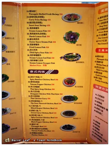 吃泰國菜不稀奇, 在台灣泰國菜餐廳很常見吃清真館子不稀奇, 在台灣, 好吃的清真館子也不少但有吃過清真泰國菜嘛? 經友人介紹, 這天的聚餐就是清真+泰國菜的組合啦所謂清真, 原意是『合法』的, 在中文裡, 比較泛指符合回教戒律可以吃的食物, 一般人可能會以為, 啊那沒有豬肉就對了其實不然, 除了豬, 血, 自死物 (魚以外自己死掉的肉類, 所以病死牛或病死羊肯定不會出現 ) 酒類以外, 還得經過回教禮儀由穆斯林奉安拉之名屠宰的才算是清真由於穆斯林或是猶太教徒的屠宰方式非常講究, 也重視清潔。如果在一些食物安全欠缺保障的地方, 看到清真館子, 選擇它準沒錯這是菜單, 價錢都還蠻合算的, 我們特別單點了一份厚月亮蝦餅 剩下是選多人套餐, 幾個人來都有配好的菜, 還真是方便 (這天選的是7人套餐)●椒麻雞 份量很大的椒麻雞, 表皮微脆, 酸中帶點微辣的口味很爽口, 配著雞肉就先吃了半碗飯●厚月亮蝦餅 大概是看過最厚的月亮蝦餅, 口味也好,餡料吃來清爽, 我個人偏愛不沾醬以口味來說, 大概只有以前在華國吃過的甜甜圈蝦餅有勝過它拿了手上的49mm 鏡頭蓋一比, 就知道這玩意到底有多厚了 ( 感謝某知名部落客犧牲自己的手當手模) ●清蒸檸檬魚 使用的是鱸魚, 魚夠新鮮就好吃了, 泰式料理又偏酸辣口感, 更配飯 ( 拿魚配飯還是要小心刺)●打拋牛 打拋, 不是把牛肉打過來拋過去, 然後一般的吃法裡你也不會看到這裡面有『肥肉』它其實是一種香料, 常見的打拋豬或是打拋牛的作法就是拿打拋葉作成醬 ( 這在台灣有一點點難 )然後和牛絞肉炒開, 台灣會用些九層塔等提味●泰式咖哩雞 紅咖哩, 搭配馬鈴薯與雞腿肉一起煮, 吃這個除了紅咖哩很不錯之外, 也要注意裡面的馬鈴薯與紅蘿蔔泰國菜煮馬鈴薯還蠻好吃的 ●綠椰汁雞 雞肉不太一樣, 用的是雞胸肉,口感上稍乾一點, 綠咖哩很香,適合配飯●涼扮花枝泰式這種花枝作法我蠻喜歡的, 花枝軟嫩, 配上酸甜的醬汁吃起來頗過癮●蝦醬空心菜 空心菜一直是喜歡的蔬菜泰式蝦醬炒法不管是空心菜或高麗菜都好吃也是很下飯的好菜●黑胡椒牛柳 與一般常見炒法以洋蔥為主, 加上很重的黑胡椒醬汁不同, 這邊的作法比較像牛肉單獨炒一炒再配上蔬菜雖然沒有那麼厚的醬汁, 或者可能加過嫩精的牛肉不過這炒法我還蠻喜歡的, 肉質略乾但較香一點, 也是下飯●酸辣蝦湯 這酸辣蝦湯有像我在清邁吃到的泰國版蝦湯, 酸甜度都對, 唯一的問題是太辣了一點辣度有點破壞掉其他口感, 但還是讓我忍不住多喝幾碗, 畢竟好的酸辣蝦湯在台灣不多見如果能不要那麼辣就好了●甜點與水果 甜點與水果可以在自助檯拿西米露不錯吃●總評吃的很愉快的一餐食物不錯, 有些菜還真的很有泰國味價格也不貴以泰國菜來說,會想再吃的好餐廳…查看更多