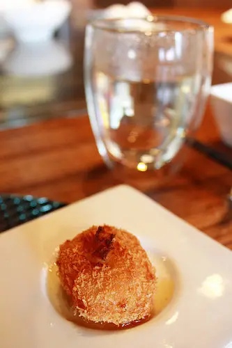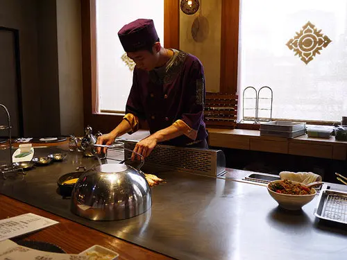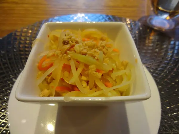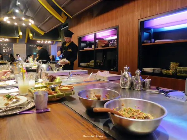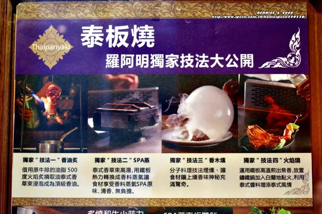 睽違兩年又再度品味一下泰板燒的滋味想當初第一次與他相遇時,覺得泰式料理也能在鐵板上大作料理覺得太新鮮惹對它是多麼想念和心心念念哪天能再來嚐嚐這可能是近期還能撐上幸運的事了(畢竟近日衰衰的)瞧瞧菜單,更多了南洋風味價格依然都已588、688、888、988、1088為主相關菜單鐵板上好不熱鬧可惜因晚餐時間客人較多,只好被安排離鬧區遠一點點無法看到更多美食秀環境上有著泰國風情,仿佛令人懷念起泰國行泰板燒不僅是家庭聚會、或朋友情侶都很適合以套餐方式,從前菜、濃湯、沙拉、主食、飲品和甜點還有可無限續的白飯及打拋肉,十足豐盛及飽足一入座,店員就遞上熱香茅茶,取代了一般茶水,冰的則是附上薄荷茶女孩子天氣冷喝熱得好喇開胃前菜有著懷念的月亮蝦餅,還有酸辣蝦拌麵及黃瓜配大薄片店家有說明從中間開始食用,畢竟左右兩邊的口味都過於明顯怕壓過蝦餅味道酸辣味很帶勁,蝦子吃來新鮮湯品則是選擇海鮮酸辣湯及泰式香菇雞肉湯海鮮酸辣湯,辣度程度明顯,若不嗜辣者(但又很想喝酸辣湯)可以和店家索取椰奶沖淡濃郁感唷不過我們是覺得不會太辣喇,但就是重口味的湯喔使用些許蝦仁及花枝,內容度就比較沒那麼豐盛泰式香菇雞肉湯反到是這碗湯就澎湃許多,被兩顆雞肉丸子占滿,還有香菇及蛤蠣口味偏清淡,若是有點道這碗湯一定要先嚐這碗,不然味道就被壓過去囉沙拉選擇涼拌海鮮沙拉及豬肉沙拉涼拌海鮮沙拉口味吃來與開胃前菜的酸甜醬極度相似而豬肉沙拉,可使用美生菜包覆,吃來就像包蝦鬆的口味雷同尤其是美生菜的脆度,搭上涼拌豬肉丁,覺得非常爽口相較起來比較喜歡這道沙拉呈現,也看似澎湃感喇品嘗到沙拉這道時,鐵板也不閒著我們的主食正在鐵板上蹦跳中就從潮泰炙燒脆皮豬開始說起吧先取出豬五花最均勻的部位,先置入烤箱高溫烤至6分熟,再放上鐵板加熱分割就呈上圖樣貌,使用火槍將豬皮製燒酥脆,不過這部分我們是沒嘗見啦乍看真的很像故宮博物院的東坡肉只差這是酥脆貌擺上盤,那三層的豬肉層次鮮明,還可以搭配店家調製成的沾醬不過稍微可惜的是,不知哪個環節失手了,覺得製燒脆皮有點過硬吃來偏乾,反倒是一直配上三味沙朗牛排的椰汁將才吞得下去可能揪令是老人嘴喇反倒是可以看到沙朗牛排在鐵板上滋滋作響就把希望放在這道菜上了三味沙朗牛排顧名思義的一牛三吃的概念,不過看到脆皮豬在另一旁感覺是有點空虛既冰冷口將口將!上桌囉彷彿吃下午茶般,三層不同享受使用美國的Prime等級的冷藏沙朗心,使用油花分布不同區塊製成三種型態料理第一層已五分熟肉條狀呈現,再搭配椰汁醬覺得鮮嫩,趁熱吃較好咀嚼,椰汁醬更欲罷不能很多食材都要搭配椰汁醬才覺得夠味第二層椒鹽骰子牛,這個真的要趁熱吃!因為不小心放冷後有點死鹹加略硬,阿唷浪費好味道了喇不過可以請廚師不要灑太多椒鹽唷,不然都搶走牛肉原先的汁味最下層,也是肉片及肉條搭配,這是使用牛排最邊邊較有嚼勁的部分煎製,搭配泰式烤肉醬因這盤較早處理好,原先還擔心會不會溫度降低後口感不佳沒想到真的就只有骰子牛部分冷調會略硬外,其餘可能因有醬汁相佐,吃來都很美味唷除了主食外,泰板燒的周邊主食更吸引人尤其是打拋豬!超級下飯,可以有辣與不辣選擇再搭配泰國香米,要不是已經呈現半飽狀態真的可以無限續碗耶而三味沙朗牛排還會另外附上鳳梨炒飯喔黃金粒粒分明搭配鳳梨比較不油膩除了一般會附上米飯與打拋豬外,這鐵板麵包也是最讓我思思念念其實就是很簡單的白麵包,沒有進一步了解其成分不過撕開質感與咬下一口熱呼呼紮實感在沾上椰汁醬汁超對味其實點泰式椰汁雞就會附上這麵包囉不過這回我們是另外單點的,明明已經超飽了阿另外,打卡按讚還有泰味生蠔可以免費吃喔,一定要來一下的吃了這麼久終於到甜點胃出動時刻這回選南瓜布丁及香蕉煎餅南瓜布丁的南瓜味不會特別重,還是吃得到雞蛋香,的確是很特別的口感但是來到泰式餐廳怎能錯過香蕉煎餅呢薄薄一層餅皮搭配香蕉及煉乳,是會讓人一口接一口,不會因為香蕉及煉乳而過於甜膩覺得這還是必備款的而飲品上,則是荔枝汁(左)及泰式奶茶(右)其實雙方喝起來就是一般般喇,沒特別驚豔泰式奶茶也經過調整沒有我們印象的橘黃色所以想喝什麼就喝吧~(揪令反倒比較喜歡香茅茶XD)南洋風格,就連洗手間也可以沉靜再精油芬香氛圍裡一般座位區還有泰國lobby會使用的大屋頂真的會有一股錯意是坐在泰國的泰國餐廳裡呢泰式料理在鐵板舞弄一番弄出多樣式的創意料理從前菜至飲品甜點將過去需要單點一盤盤椒麻雞阿、打拋豬阿、酸辣海鮮湯等泰板燒一次到"味"呢!菜單多少都有稍微調整依然維持在水準上尤其服務態度很好唷,隨時注意客人一舉一動那個打拋豬阿~那個飯阿~還有簡單的鐵板麵包阿真的還是很容易讓人想念呢根據自己喜愛的主食價格會有所不同下回還是要找三五好友,每種都來一份,什麼都能吃到的感覺真好…查看更多