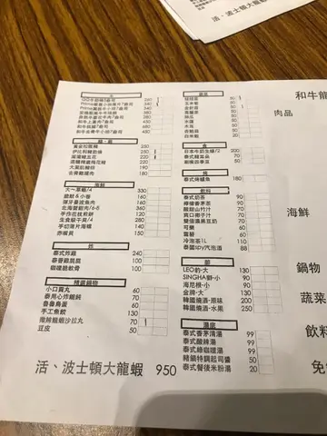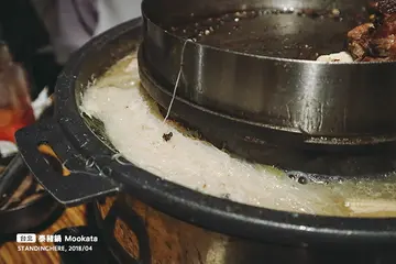之前看到有人介紹 [泰豬鍋],既是泰式火鍋又有烤肉,感覺相當不錯,評價也蠻好的,於是老同事的月聚我們就挑在這裡。[泰豬鍋] 位於台北東區大安路的巷弄裡,離忠孝復興站約莫 7 分鐘的腳程;建議可以走東區地下街,再由出口 15 接大安路,比較不用風吹雨淋喔~店裡的空間還蠻大的,但幾乎都用來放座位了,我感覺是稍嫌擁擠,後面的客人疑似喝了酒,講話超大聲,覺得自己一度都要聾了。裝潢說不上什麼風格,且整體光線偏暗。但牆上那些泰國的圖像或照片,還看得出是間泰式餐廳;比較傻眼的是菜單是用 A5 影印紙印的....(邊邊還被裁到!)哈哈哈哈,不是開一年多了嗎?若想要長久經營,整體風格與品牌形象應該可以好好規劃一下。而店名中的 Mookata 指的就是泰國超人氣國民料理,由豬肉 Moo 與煎鍋 Kata 兩個字所組成。所在這裡主要就是吃泰式烤肉,還有可以順便吃鍋。這裡可以單點,也有套餐,如果胃口,點套餐會比較划算,但價格有點高就是了。"頭暈膽固醇雙人套餐" $1988"和牛超值盛宴四人套餐" $3299都有多種肉品、海鮮、鍋物蔬菜和飲料,還贈送特調起司醬、泰式米粉和湯底。如果是單數人,可以套餐再加單點,這樣會再便宜一點;但如果再加點其它食物,再加上 10% 服務費,差不多就噴一張小朋友了!(錢歹賺啊~~)我們點的是四人套餐,以下簡單介紹囉!/上桌後,會送上鍋爐,醬料和吐司片。這裡吃的也是木碳的呢,比較費事,但火力比較強,也比較省成本吧?而看到爐子,忍不住笑出來,當時正在看超紅泰劇《天生一對》,有一段就是女主角嘎拉給因為想吃泰式烤肉,而 "發明" 了這個烤爐呢!哈哈之前在 中壢 [大象泰式美食館] 也用過這樣的烤爐 (當時 $380 吃到飽,超懷念的)不過 [泰豬鍋] 用的做了不少改良,除了外圍那圈加寬加深更方便吃鍋(但還是有點難裝呀中間凸起烤爐的部份,也用了鐵圈圍起來,避免油花亂濺。不過看看覺得怎麼跟韓式的銅盤有點像呀哈哈三種醬料很泰式,聽說是老闆遠赴泰國拜師學藝學回來的。綠色的是青醬,適合沾海鮮;中間橘色是以豆腐乳製作的泰國甜辣醬,適合沾肉,右邊的羅旺子烤肉醬醬吃起來酸甜且有一些香茅的香氣,百搭,也是我最喜歡的。桌上的吐司片,不是要給客人吃的呀!而是烤肉時用來吸油的。一些比較肥、會噴油的肉,就可以拿吐司壓在上面,讓吐司吸油也免於油亂噴。用來清理盤面也很方便,不夠可以隨時請服務生補。湯底一開始服務生會端上這盤,有三種湯底讓客人試喝,再決定要選哪一種。由左至右是:香茅、酸辣蝦湯(冬蔭功)、綠咖哩因為只有香茅是不辣的,吃起來還有微微的甜味,所以我們就選香茅了。只是覺得這個試湯的方式還真煞有其事 XD肉品和牛上蓋肉 7oz / 和牛牛肋條 7oz / 和牛肥腹肉 7ozPrime 去骨牛小排 7oz / 安格斯黑牛牛培根 10oz黃金松阪豬 / 厚切梅花豬 / 去骨雞腿肉這些肉我沒有一一拍,大家就看看照片哩!原則上都還不錯吃啦,畢竟是和牛啊~~比較浮誇的就是牛培根,很浮誇的用著像是放砧板的架子晾著...有的肉適合烤,有的則是用煮的,像這牛培根因為油脂太多,且很薄,所以店員是建議我們放進鍋中涮一涮就可以吃了。而烤肉原則上會有桌邊服務,只是那天不知是人手不足,還是客人真的太多,我們三桌就只有一個店員在弄,不時還得去其它桌支援,也是蠻辛苦的。所以有可能你還是得自己來喔~海鮮白蝦 4 尾 / 蛤蠣、鮮魚片、脆魷、蚵仔、手工魚餃這是海鮮的內容。本來還不覺得有什麼,但看到隔壁點雙人套餐的海鮮有小龍蝦、香魚和鮑魚!忍不住大喊:為什麼!!!!!比較一下,雙人的肉品比較少,而算起來一個人的費用整體單價比較高,大概重點都在這了吧 XD鍋物魯魯鳥蛋 / 泰用心炸餛飩 / 脆脆貢丸 / 微辣龍蝦沙拉丸鍋物整個沒拍到,請大家在其它照片中尋找他們的身影 XD不過鳥蛋和炸餛飩是可以吃的,不用下鍋,還蠻好吃的喔~蔬菜 / 綜合菜盤蔬菜原則都是下鍋煮的,那天吃到了玉米筍、絲瓜、黑木耳、水蓮、金針菇和高麗菜。另外還有一些美生菜,是可以包著烤肉吃的~(這就真的受韓式影響了吧!?飲料50元飲料四杯,可補差價50元的飲料只有可樂雪碧,我們都不想喝,所以都補了差價選其它。有人喝泰式奶茶,我是喝酸甜山竹汁...就真的酸酸甜甜的,沒什麼特別哈哈哈看店裡有在賣泰國的黑豆奶,我想山竹汁應該也是泰國某牌飲料吧?而那漸層... 一開始我們還驚呼好美!後來發現是杯身上的顏色啦~~但店家沒針對飲料搭配,比如紅的配泰奶,黃的配山竹汁等等,任意裝了就上來,很容易搞混耶!(是說服務人員沒記錯也是厲害啦哈哈哈米粉湯吃得差不多時,最後還有這米粉湯~泰國的米粉湯也是有名的呀!而這滿是精華的湯底,煮起米粉也是必然好吃的。只不過下米粉時,再次感受到這鍋... 真的沒有很好煮!一下子湯汁都要被吸完了啦~~~ XD泰式炸雞因為看人家介紹,泰式炸雞好像很好吃,所以我們就額外加點了一份。四支兩節翅要 $240 其實很不便宜欸~~想想在泰國路邊一支才多少錢?(突然又好想去泰國了呀!但,它是我這天覺得最美味的東西!整個香氣迷人,外皮酥脆鹹香,肉還很多汁,好好吃!覺得自己一個人可以嗑掉一盤,哈哈哈話說,這盤炸雞也顯出 [泰豬鍋] 的誠意。因為一開始我是透過 Openrice 訂座 服務來訂位的,當時有訂位 8 折或 9 折的優惠,忘了。但店員遞來帳單時,我向她詢問是不是有優惠,她幫我確認的同時,我也發現原來是只