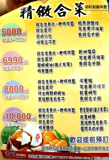 洺町和風美食 (台北) 網址: https://s.openrice.com/cHRSm02kWe000 地址: 台北中山區龍江路110號 電話: +886 +886225032546