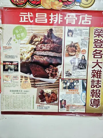 武昌排骨大王,國父紀念館站排骨飯老店 這是寫懶人包,發現缺照片所以就約了朋友一起來吃這間店其實某角度還和我有點關係,據說它在以前那間武昌街的老店,是我老爸老媽約會的店家 好吧,那麼就來吃吃吧。到了發現網路資料與實際不同,7:45 就要收店了。對習慣晚吃飯的本人來說哇這真早,木柵嘛? 但還是運氣好問一下後被同意可以用餐店內的裝璜 嗯,一進去回朔20年時光的感覺菜單●武昌排骨大王│排骨飯 老牌的排骨飯,加點肉燥和酸菜 就排骨加飯有點酸菜,滷蛋是加錢另外買的 排骨頗厚,飯上面有肉燥 份量稍少了一點 老實說......我小時候還是有去過武昌街排骨大王吃過的,這感覺除了排骨以外,不太像當年的做法 不過都七點二十出現,老闆願意給我們吃這飯,已經非常感謝了配菜其實稍多一點點,會讓人更滿意不過是你的話你會想多一點配菜賣120 或是這樣吃100 呢?●武昌排骨大王│排骨麵 蠻大碗的麵,因為被放進來可以吃就忘了特別請對方不要加豆芽,所以簡單吃吃 湯頭還ok ,搭著排骨吃還蠻不賴排骨。這樣擺著比放在飯上更明顯直接 排骨就是很厚,比起很多店家炸的乾乾的又薄薄的 這厚度就是好缺點是整體吃來有點小硬,可能和我自己牙口不好比較有關係排骨味道是很夠的,比起之前吃過的一些確實不差,該說是蠻好吃了,不過稍稍油了一點 因為是最後時間吃到,也就這樣還算不錯稍油但很入味的排骨,肉很厚 ●武昌排骨大王│總評 在繁華的東區國父紀念館站,這天太晚去,不知平常生意如何 畢竟是老味道,希望它可以繼續下去