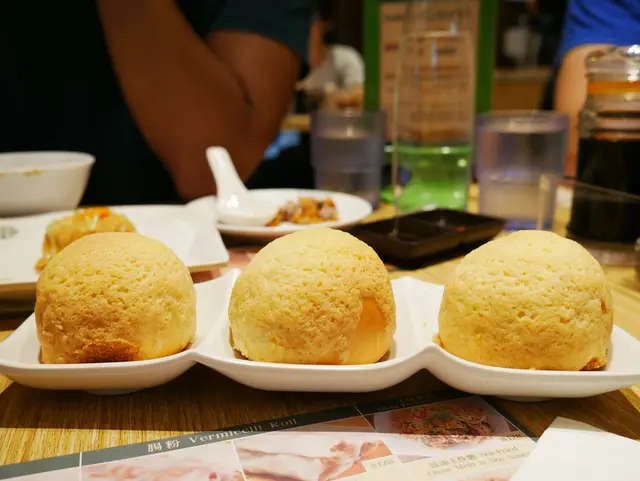 這天大胖心血來潮,帶我到離家不遠的添好運北車店吃晚餐, 因為是假日,意料中的還是需要排隊,不過比起剛開幕的時候好多了, 雖然排隊隊伍長,但前進速度蠻快,大概等15分鐘後就入座溜~ 因為菜單比較多頁就索性不拍惹(對,很任性,這天比較懶散😅), 詳細內容可參考官網菜單👉https://bit.ly/2QkRezv ▲酥皮焗叉燒包$128(3pcs), 圓滾滾的奶酥外皮,入口香酥帶有甜味, 沒多久便隨著唾液化開,搭配微鹹又甜稠潤口的叉燒內餡一起吃, 各自特色依然留存不互相打架,但整體吃起來又不違和, 甜鹹滋味在嘴裡交互作用,十分耐人尋味,非常好吃 ▲鮮蝦腐皮卷$138(3pcs), 看到這黃金帶點微焦色澤的腐皮卷就在心裡大加分, 用筷子夾起時便能感受到表層酥脆的質地, 入口更是能嚐到腐皮多層次的薄酥口感, 內餡由碎蝦仁、韭黃、香菜組合而成, 蝦仁的飽滿鮮甜味搭配韭黃香氣相當迷人, 但能再多吸點油走會更無負擔~ ▲XO醬臘味炒飯$158, 裡面包含台灣米和泰國香米兩種軟Q帶點蓬鬆的口感, 再利用XO醬、臘腸、蔥末等調味熱炒, 鍋炒香氣再搭配臘腸的煙燻味,讓整盤炒飯香氣逼人, 入口鹹味適當、十分夠味,但XO醬稍微油了一些, 吃到後面有一點點小膩 ▲小心流沙煎堆$98(3pcs), 看官網說"煎堆"在粵語俗語中有"好彩頭"的涵義, 外層是用糯米和白芝麻炸製而成的,非常酥脆,香氣十足 ▲裡面的金黃流沙是用整顆鹹蛋黃製成,嚐起來鹹鹹甜甜的, 相當耐人尋味,整顆吃起來外酥內香濃,口感層次分明, 但吃第二顆會覺得有點小油膩~ ▲晶瑩鮮蝦餃$138(4pcs), 平均一顆34.5元,算是要價不菲(不是"斐"喔我查過😂), 但個頭蠻大,外皮微軟Q好咬,內餡飽滿,清爽鮮甜, 入口飽嘴滿足,還不錯吃! ▲鮮蝦燒賣皇$138(4pcs), 和蝦餃的均價一樣,是利用鮮蝦和梅花肉做成的漿, 口感較有彈性且紮實,海陸合併一樣能吃到甘甜滋味, 帶點豬肉的油脂香氣,也不錯吃~ 整體而言, 這次用餐服務生的態度良好,問候也很積極, 但座位鄰近,用餐可以清楚聽到旁邊桌的客人聊天內容😅 不過餐點幾乎都蠻好吃的, 只是有些煎/炸點心能夠再少點油會更好~ 之後會想帶爸媽來嚐嚐, 米其林一星算有實至名歸溜。…查看更多