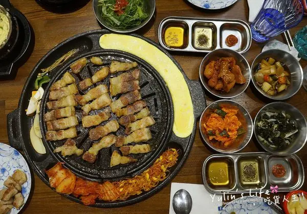 久違的系會小聚!這天學弟訂了公館商圈的『滋滋咕嚕쩝쩝꿀꺽韓式護心肉公館店』既然要吃韓式燒烤一定會點燒酒!那就搭捷運出發唄 近幾年韓式烤肉旋風來台的,從Honey Pig、八色烤肉等等。各地吹起一股韓式料理風當然除了烤肉以外還有春川炒雞的加入,到現在藝人納豆也加入的這塊版圖。話說位置也不好訂,公館是滋滋咕嚕第三家分店囉!靠近公館鴉片粉圓這裡。如果對公館很熟悉那鴉片粉圓一定也知道在哪裡。一種主打護心肉專門店的概念這是我們當晚用餐的座位,公館店其實滿擁擠的。座位之間與走道很小,而且一律只有四人桌!?我看我隔壁六個人擠我們這四人桌好難過的感覺小菜、醬料都已經盛放好了第一次的小菜跟起司玉米蛋、泡菜、蔬菜都是免費的。後來再續當然要使用者付費啦!話說那小菜中的海帶芽倒是不錯吃~這蔓越莓蘿蔔片滿有特色的。解膩解膩的口感,如果單吃就會稍微酸了些清爽脆口每人的基本餐具以及沾醬話說還有圍兜兜給客人使用真的算是滿貼心的一項舉動避免自己耍笨沾到、噴到等等,還有提供畫筆可以在上面作畫看牆上貼滿了各種繪畫高手!太狂了)))醬料有三種左起:韓式豆瓣醬、海鹽、祖傳秘醬翻開覆蓋的魔法卡!不)是菜單套餐有三種!護心豬肉拼盤$1200、頂級極黑牛肉組合$1499、護心豬及極黑牛組合$1699肉類單點部分、韓式辣炒鍋類、前菜鍋物、麵、飲品我們點了一份套餐頂級極黑牛肉組合$1499+墨魚起司明太子厚蛋燒$200生菜盤上桌啦!肉盤也默默地上桌了左起:秘藏牛小排、翼板肉、牛肋條、牛五花牛小排的醃製方法感覺特別不同!?這翼板牛的紋路、色澤都相當美。烤起來也相對美味!?套餐裡面附的一個秘藏泡菜豬肉鍋看了不少人說這鍋物很辣!?我們四人倒是一致認為很酸。辣度倒還好,整鍋湯頭有點過酸了。滋滋咕嚕都會有專人專邊服務!還算貼心。但公館店可能人手不足加上尖峰時段,比較忙不過來牛五花滋滋作響,我們可是守株待兔!?準備看誰下手快這樣再來就是看你要沾哪種醬料囉!燒肉沾祖傳秘醬感覺最搭,海鹽也不行,各種醬料帶給舌尖的衝擊都是不同的滋味牛五花,油脂豐富的五花肉與那肉香。來請清淡又清脆的交叉口感,油膩感也降低些。那就是包生菜!翼板牛牛肉不需要全熟、但豬肉一定要!本身翼板牛不需要沾取額外醬汁覺得就很鹹香。瘦肉部分較多吃起來也軟嫩不少。但份量還真有點少四人都搭捷運!那就來瓶燒酒吧!水蜜桃口味$250乾杯!墨魚起司明太子起司厚蛋燒$200加入了墨魚的玉子燒,散發淡淡墨魚香。上方就是起司明太子!每一口每一次都感受到那明太子在嘴裡炸裂的口感。這厚蛋表現也不錯,不會太乾,隱約還透露出半熟的姿態。如果墨魚味道在濃郁點我想會更好牛肋條感覺是牛油條!?油脂較多,雖然這樣相對有咬勁。但在口感有點再吃牛皮糖的概念。頗不受我們喜愛的一道肥油過多了。秘藏牛小排這大概是我們最愛的一個。肥肉參半!香味十足、多了醃製的鹹香味配上生菜更是滋味佳!我們還加點了一分豬五花國產富士蘋果豬五花$250這豬五花還真是夠五花,有點肥這樣!上方塗滿了蘋果醬的概念?服務人員幫忙烤到兩面焦香之後會幫我們分食這醃製的呈現有點失望,沒有整個入味,類似把醬汁塗在肉上去烘烤。隱約還是有豬肉的騷味。蘋果的甘甜略為單薄最後我想說這空氣實在有點讓人不舒服。前幾天新聞有報導出來說公館的滋滋咕嚕空調過差。這就是我們當晚用餐的情況,很霧濛濛吧。希望可以多加改善。總結:整體吃下來有點失望大於期待,吃過幾次的韓式燒烤,在牛肉上雖然不差。但就豬肉的口味來說真的略遜色些,服務人員以及空調都還需要再加強。吃不吃的飽嗎?真的就是看個人的胃了?…查看更多