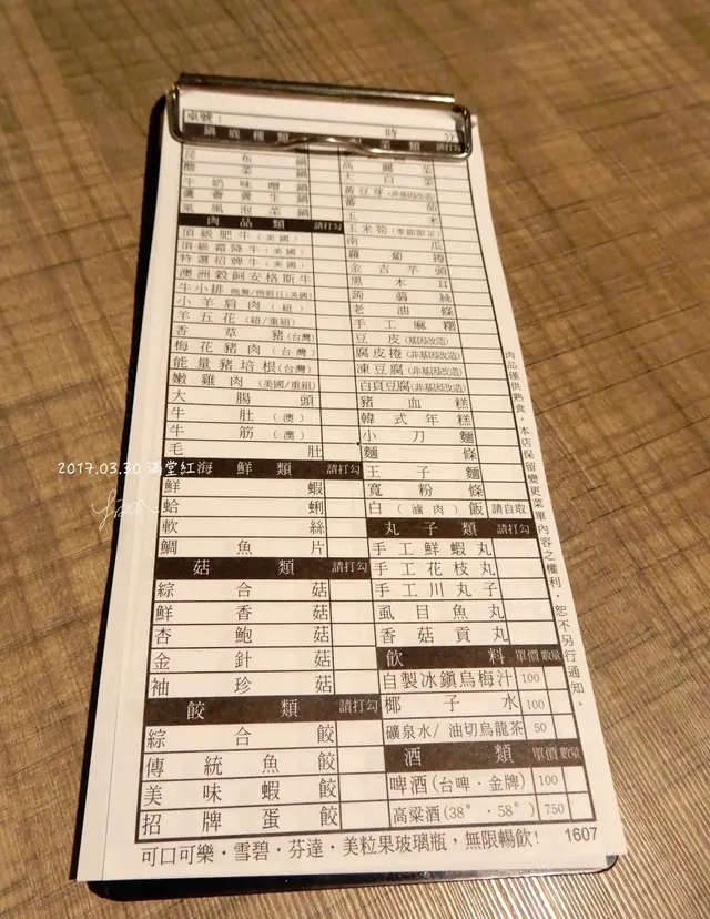 滿堂紅 頂級麻辣鴛鴦鍋吃到飽 -台北大安 頂級肉品、各式菜色無限吃(仁愛旗艦店) 職業觀光客 Lisa等級42017-10-161K 瀏覽 關注 滿堂紅 久仰大名!終於有機會來吃滿堂紅。滿堂紅號稱肉品頂級,是肉食者的最愛。話不多說,讓我們一起走一趟滿堂紅旗艦店吧!一直以來都有聽說過滿堂紅是麻辣鍋吃到飽界中頂級肉品的佼佼者,而且聽說一定要吃旗艦店,無奈這些年一直都沒有機會吃到。上次又看到有人介紹,終於忍耐不住,揪了個友人,一起前往滿堂紅大口吃肉過過癮。我訂了仁愛旗艦店平日晚上的時間,當天消費是NT$598+10%。當天到滿堂紅太興奮,忘記拍店的外觀。總之,我們一到就很快速的奔上二樓,快速入座。我對滿堂紅仁愛旗艦店的印象就是店內看起來蠻乾淨的。桌與桌之間的間隔也不會太近,不會有太壓迫的感覺。所以要來這邊吃之前,真的要記得先訂位呀!一入座碗筷都已經擺好了。菜單在此,先來畫第一輪的菜色。滿堂紅是吃到飽,所以可以隨便畫拉~只要吃得完都可以隨便畫!滿堂紅提供了非常多種類的醬料,任君挑選。上頭還有個牌子,寫上特色風味調味醬,可以依照他們的配方調配試試看。有個地方我沒拍到,滿堂紅也是有提供白飯與滷汁,可以自行搭配成滷肉飯。冰箱內有各式汽水可以拿取。除了有標價錢的飲料需另外付錢,其他都是無限享用的。冰箱內還有各式小菜,也是無限享用。我畫了各式的牛肉與豬肉,但我沒有每個肉品上菜都拍(我怎麼好意思說我後來已經吃到沒時間拍照了呢?)。真心覺得以吃到飽的麻辣鍋來說,滿堂紅的肉品真的很棒!這是我們第一輪的菜色,接下來的我都忙著吃忘記拍。我覺得毛肚還好,不是很喜歡,下次來應該會直接pass。海鮮還不錯,手工丸子類也不錯(沒拍到)。油條就不用說了,這是麻辣鍋的必備品。之後我們吃了好幾輪才停下筷子。吃完麻辣鍋,當然要用個冰淇淋做結尾。滿堂紅提供的冰淇淋是:哈根達斯Haagen.Dazs與比利時Glacio。口味不會太少,冰不會太硬,還蠻有誠意的。這是我第一次吃滿堂紅麻辣鍋,對於這次滿堂紅的表現很滿意,下一次如果有肉食聚會,一定會先提議來一趟滿堂紅。…查看更多+ 5以上食記乃用戶個人意見,並不代表OpenRice之觀點。讚好分享滿堂紅 頂級麻辣鴛鴦鍋吃到飽 -台北大安 頂級肉品、各式菜色無限吃(仁愛旗艦店) 滿堂紅頂級麻辣鴛鴦鍋 仁愛旗艦店 https://s.openrice.com/cHRTm02jgy0W0檢舉 張貼 評分4味道4環境4服務3衛生4CP值用餐方式內用