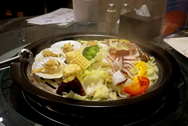 【漉-海鮮蒸氣鍋】的「漉」字是「完封精華」的意思,透過特殊設計的蒸氣鍋蒸熟海鮮,吃得是海鮮本身的鮮美滋味,適合喜歡品嚐海鮮原始風味的顧客,店內設計以個室包廂為主,也適合節慶宴客及親友聚餐使用,這次就趁著公司春酒來享用海鮮大餐囉! 【漉 海鮮蒸氣鍋(松江店)】鄰近捷運松江南京站,從3號出口出來步行約3分鐘,深藍色質感門面顯得高雅氣派。 一踏入店內左手是是店家自家水產養殖區,活跳跳的海鮮新鮮直送。 餐廳的一樓用餐空間以4人桌為主座位不算多,右半部則是多間獨立的大圓桌包廂。 點餐方式以2-10人套餐為主,也可單點食材,我們今天享用的是8880元+10%的「六人極鮮套餐」,但因我們有7人,另外再多加1人份的套餐食材內容及費用,六人極鮮套餐內容包含御皇米干貝粥、精緻小菜、秘製醬汁、鮮活海蝦 300g、野生大海老6隻、季節貝類 600g、鮮凍大干貝12顆、台灣鮑魚6顆、沙母兩隻、季節活魚、頂級牛五花、松阪豬、綜合菇盤、甜點。 一開始會先送上熱茶及醬料,今日兩款精緻小菜為黑木耳及柚香蘿蔔,清脆開胃,還可再續。一旁另附上蔥花、辣椒與蘿蔔泥等調味料。 【御皇米干貝粥】服務人員會在蒸氣鍋底層鍋內先放生米及干貝、香菇等食材,米粒使用御皇米,邊蒸煮海鮮的同時精華會慢慢滴入底層,最後再來享用融入海鮮美味的干貝粥。 【綜合菇類、季節貝類】一開始先送上綜合菇類及季節貝類蛤蜊。菇類有香菇、杏鮑菇、金針菇、秀珍菇。 蒸氣機由底下送上蒸氣,蒸煮時蒸氣會透過蒸氣盤的孔洞穿透,加上蓋子密閉,可直接蒸熱食物,而且服務人員都設有定時器,能掌握每道食材的蒸煮時間,呈現最佳熟度。 計時器響了服務人員就會來協助掀蓋,菇類鮮甜嫩口,輕沾點椒鹽就很可口,蛤蜊肉大顆飽滿具海味。 【鮮凍大干貝】六人極鮮套餐的鮮凍大干貝原本是12顆,我們有7人所以多點2顆共14顆,配上高麗菜及絲瓜蒸煮。 這個大干貝口感軟嫩,鮮甜多汁,好好吃啊!整顆入口讓我吃得好滿足! 【頂級牛五花】牛五花含豐富油脂,切成薄片方便蒸煮,色澤鮮紅舖滿整個蒸盤看來份量好多,但其實下層是舖滿小豆苗菜,實際份量沒視覺上多。 牛五花口感薄Q肥嫩,沾點果醋或椒鹽入口滋味更佳。 【鮑魚】、【沙母】台灣鮑魚6顆及沙母2隻,沙母有事先切塊方便食用,可以看到沙母有豐富蟹黃,這盤組合好誘人啊! 蒸熟後,滿腹橘黃色蟹黃的沙母肉質鮮甜,新鮮吃原味就很可口,有事先剪殼讓客人好剝取,Q彈鮑魚海味十足,好吃沒話說。 【松阪豬】套餐的另外一款肉品是松阪豬,也是以薄片方式舖在高麗菜上。 松阪豬原本就有事先灑上黑胡椒提味,口感鮮美嫩口,雖然切成薄片是方便蒸熟,但感覺可以再厚一些比較吃得出原始肉質的美味口感。 【野生大海老】、【季節活魚】野生大海老擺滿盤子週邊,季節活魚整尾切段後放上蒸鍋,再搭配玉米及栗子地瓜。 大海老Q彈鮮美,不用沾醬吃就很甜很好吃;栗子地瓜鬆軟可口,玉米也很甜,而蒸煮後的魚肉肉質蠻細緻Q嫩,吃原味或沾點果醋味道各有不同風味。 最後再來品嚐融合海鮮及蔬菜精華的御皇米干貝粥,打入蛋液攪拌烹煮一下即可食用,沒有多餘的調味,原汁原味的海鮮味,味道清爽,可再灑點胡椒鹽滋味更佳,粥的份量還不少,原本套餐上的海鮮是吃精緻的,吃到粥才有飽足的感覺。 【甜湯】今日的甜湯是枸杞銀耳湯,脆嫩銀耳味道不會太甜,爽口不膩。 【漉-海鮮蒸氣鍋】標榜最新鮮的海鮮以蒸氣鍋料理,保留食材的原味,可惜海鮮本身份量不算多,吃完有點空虛,若不是有干貝粥可能會有沒吃飽的感覺。價位中上,若是種類及份量再多些會更好,服務人員親切有禮,環境座位舒適,比較適合尾牙春酒宴客多人享用。 想看更多美食記錄請見wing的自助行腳趴趴GO! http://wing1209.pixnet.net/blog…查看更多