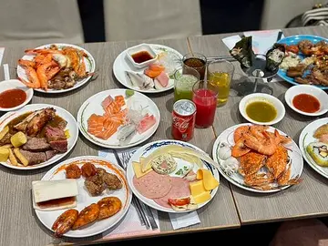 牛奶布蕾 抹茶蛋糕 巧克力蛋糕 起司蛋糕 / 牛排德國豬腳 / 台南溫體牛肉湯 / 生牛肉湯 / 生魚片區 / 冰淇淋 / 佛跳牆 / 肥美生蠔 / 氣泡水 / 烤生蠔 / 酒 / 現做舒芙蕾 / 甜點區 / 焦糖布丁 / 舒芙蕾 / 義大利麵 / 燙牛肉 / 清新小鱸魚 / 火辣清爽紅牛 / 噴香八味菇雞菇雞 / 鴨香一抹紅