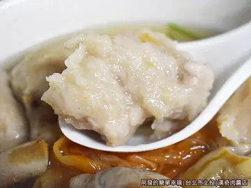 漢奇肉羹就位於北投站附近生意非常的好上次星期二來剛好是公休日沒吃到這次來雖然已經吃過早餐了說什麼也要來一碗肉羹湯才行XD從北投站沿著光明路走過來大約二百公尺就到了看到上面有綠色的帆布就是了前面靠近黃色招牌那裏是排外帶的比較後面這裏是排內用的看的出來都是當地人來吃滿多伯伯來用餐的排內用的時侯服務人員剛好拿了一大盆的排骨酥來越聞越香呀等一下也點來吃好了XD看了一下MENU真便宜呢乾麵大碗只要40元呢這裏的湯是可以混搭的二種綜合是60元四種綜合是90元那就來一碗四種綜合吧四種綜合湯(90元)算是滿大一碗的四種綜合湯有豬腸、貢丸、肉羹跟排骨酥就是一網打盡的概念啦XD他們家湯頭算是滿清淡以羹湯來說算是滿少的勾芡肉羹裏面有包一條里肌肉需要稍為咀嚼一下還滿大一顆一次吃這麼大一顆爽度是有的但肉羹的彈性上老K覺得算是一般貢丸吃起來是軟中帶點彈性的口感可能習慣吃新竹那種很彈牙的貢丸了這貢丸老K覺得還好豬腸煮的不算軟爛所以稍為有一點點硬排骨酥只有二塊吃起來味道還滿香的外酥裏面的肉紮實有咬勁是這四種裏面老K比較喜歡的K的小叮嚀:說真的有點失望呀 除了排骨酥還不錯之外 其他都不太合老K的口味 口味真的因人而異呀 不過他們家的價格真的滿便宜的 如果沒吃過的朋友還是可以來試試 也許剛好合你口胃也不一定查看更多