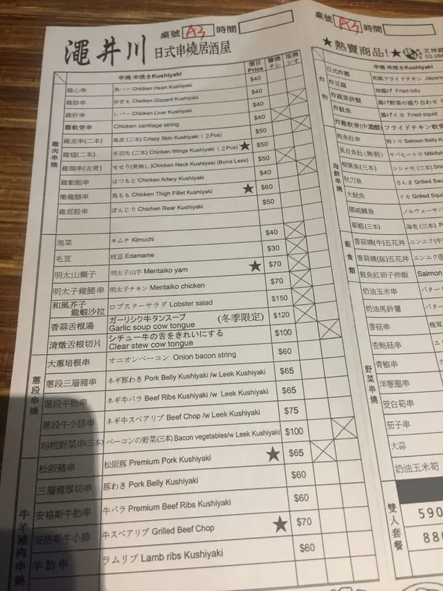 【Lexie臉銷為】是的,下這樣的文案是有點標題殺人,但也是我覺得真得頗為可惜之處。『繩井川日式串燒居酒屋』在士林捷運站附近,交通很方便,如果不想去夜市人擠人,又在附近想吃點好料,這是不錯的選擇。周六晚上到訪人潮不少,許多位子已經訂走,現場只剩吧台區,後面的客人甚至要現場候位了。開到凌晨一點,也是個夜貓子的好去處。前不久才去同個老闆開的『火人直火燒肉丼飯』(也在士林夜市附近),老闆你應該要搬VIP給我啦XD,但目前直火人不能訂位,上次整整等了一小時! 所以如果直火人沒位子那可以過來繩井川看看喔!炭火使用,基本上烤物都有不錯的水準,炭香味迷人 被安排在吧台的高腳椅,必須說這高腳椅大概是我坐過最高的,完全欺負短腿人(跺腳)爬上去需要點技巧啊!沒有看過吧台用這種金屬片製作,覺得挺混搭也滿喜歡的 菜單如下 有兩種套餐 $880 $590當天真的沒有很餓 ,我們就選了$590套餐,一人不到$300,算相當平價基本上如果都單點其實也不貴,這定價在台北市算很佛心,何況還是人潮這麼多的地方。 $590套餐的香蒜牛五花丼 (有含兩碗 可選豬或牛)牛五花的醬汁屬鹹甜口味的照燒醬,炭燒香氣非常出色,牛肉入口很有咬勁不過老,肉表現挺優秀。只是其他.... 有待加強了。首先是蒜片,稱它為老鼠屎也不為過。好好的一碗丼飯,被這焦苦到不行的蒜片給毀了。如果不能炸出金黃酥脆的蒜片,我寧可他不要放呀。蒜片本人難吃到像魚刺般難以下嚥非常想把它挑出來。再來是生菜... 我不太欣賞丼飯裡放美生菜,如果是燙過的蔬菜(香菇?玉米筍?)、醃漬的海帶絲、牛蒡絲也比美生菜好,不過美生菜可以讓你包著肉跟泡菜吃,個人喜好不同囉。飯的部分,真是輸了直火人 一截,ㄧ般軟軟的白飯,且有點油膩。直火人食記點我說了這麼多,其實整碗丼還是不錯吃的,主角的肉類擔任了超級英雄的角色撐起一片天,且醬汁真的很香,整碗白飯即便有點油但還是挺涮嘴。其他的配料我就可以稍微忽視$590 套餐的 雞翅兩隻、雞腿一串、香菇一串、奶油馬鈴薯兩片。再來進到串燒部分,因為我先吃了丼飯再吃串燒,結果發現醬通通是同一種味道,免得顯得口味有點單一,因為醬燒味道濃郁,好像吃什麼食材都變成兄弟姐妹了。我跟豐滿哥永遠站在天平的兩邊,我覺得雞翅好吃,他覺得雞腿串好吃。香菇很水嫩,奶油馬鈴薯也有淡淡的奶油香氣,這兩道都滿令人喜歡。$590套餐的烤魷魚烤魷魚比我想像的還大隻,單吃也是一樣的照燒醬,但烤魷魚就是有種特殊香氣,且擠上檸檬提味非常加分,我很推薦這個!!大合照,兩碗飯加上其他的烤物 $590,免收服務費,個人認為還是值得推薦。如果想吃丼飯,直接去直火人!! 覺得直火人肉類處理的更具水準飯也更好吃(只是不能訂位很煩人呀~),來繩井川的話則是點串燒與其他烤物可能會比較適合喔小短評:滿分都是5個 食物:●●●○ 價格:$$ 交通:●●●● 再訪度 :●●● …Read More