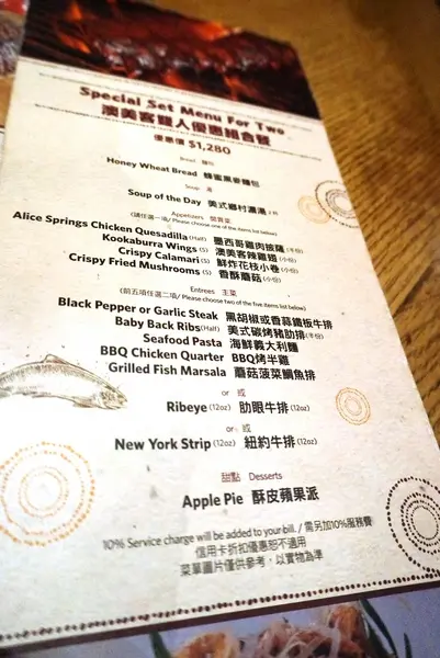 好久沒來分享美食文了,這一次是我最愛的牛排!!雖然是大白天,但大大的霓虹燈"澳美客"三個字真的很顯眼場地寬敞以外,就連裝潢也都有一種濃濃的西部牛仔的風格,連桌子都是用木頭做的,真的好道地喔(菜單也是簡單清楚明瞭)我這次點的是澳美客沙朗牛排前餐送上的是蜂蜜黑糖麵包,香醇的麵包香還沒吃就已經讓人覺得很美味了!!吃起來的口感實在綿密,每一口都很滿足,加上旁邊的奶油,微鹹微鹹的滋味和黑糖的甜混在一起,真的好吃極了而且重點是還可以無限續(爬文後才知道==)接著送上來的就是主角拉~~口水都流下來了~先看看這薯條,厚度很完美,咬下去感覺很綿密細緻,讓我忍不注一口接著一口~好吃,重頭戲上場囉~七分熟的牛排(牛排熟度可以依喜好做調整)外酥內軟的牛排吃起來多汁有嚼勁,一點也不老,很剛好,而且沒有腥味,光是原味就很好吃了!!切開後一小口一小口吃真的很享受!! 雖然說有沾醬可以配,但其實我覺得他原本的調味就很夠了,要是沾醬就多餘了!!整體來說分量很剛好,雖然我吃得很稱,但也是因為他讓我心滿意足阿~~…查看更多