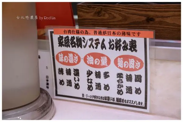 濃厚豚骨ラーメン 特濃屋 (台北) 網址: https://s.openrice.com/cHRSm021De400 地址: 台北中山區中山北路二段77巷22號 電話: +886 +886225222808