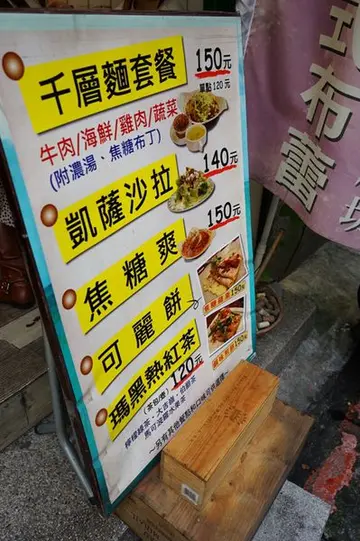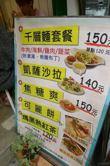 這天在岡太郎家吃完飽足的日式食堂晚餐想吃個甜點滿足另一個胃,想想附近有什麼厲害的甜食突然憶起「小綿羊五隻腳」這個名字,便跑到永康街附近晃晃***周花花,甲飽沒 FB粉絲專頁 https://www.facebook.com/tenjochou/ ***煎餅磨坊推薦指數:★★★★☆ 4顆星一句短評:隱身巷弄內,價格平實的手做美味店址位在熱鬧的永康商圈內可搭信義線坐到東門站,沿著永康街走會在右手邊附近的美食真不少,從高級貨到便宜貨都有,總忍不住連吃了好幾攤煎餅磨坊的店面並不明顯,但也不算太難找就是以前在師大夜市紅極一時的小綿羊五隻腳搬到永康街後,小小店面改名叫做煎餅磨坊內用區只有兩桌,有沒有座位則要看緣份多數客人以外帶為主,不過就算要等也不會太久就是菜單在牆上,餐點主要分為五大類:千層麵、鹹味煎餅、沙拉、甜味可麗餅、甜點主餐價格都在$160內,甜點則多在$100內,價位還算親民因為我們吃完晚餐才來,所以重點放在甜點上 焦糖布丁---$50這款絕對是煎餅磨坊必吃招牌連知名的甜點達人小虎哥都大力推薦,一定要試試布丁成品擺在甜點櫃裡待上門的食客點餐後,再把上頭的焦糖烤脆現點現烤果然才能有最棒的美味,湯匙一敲即發出「啪嚓」脆聲微苦焦氣呈現成熟氣味,甜度掌握得宜不會膩口 底層的布丁其實比較像是布蕾幾近液態、口感柔滑綿密,入口不需太多咀嚼蛋的香氣、奶油甜味頗出色,雖然不是我習慣的布丁,但還不錯吃就是布朗尼---$60看著甜點櫃裡,這麼一大塊只要60元好便宜就點了XD相較於現在許多華麗、改良版的布朗尼,煎餅磨坊走得是樸實路線布朗尼單純是塊巧克力蛋糕,很簡單卻能讓人留下好印象不會過乾也不到濕潤,非常精準抓住多數人都能接受的比例上頭的焦糖醬豐富了味覺,相較紅透半邊天的焦糖布丁,我更愛這款 拖了好久的煎餅磨坊初體驗大致上來說甜點確實都蠻好吃的改天來永康街逛逛,想來份手做甜食不妨踏進來唷煎餅磨坊地址:台北市大安區永康街30-1號電話:0939 333 402營業時間:12:00-14:30、17:00-21:30覺得這篇食記實用嗎?您的一讚一分享,都是對周花花最大的鼓勵唷…查看更多