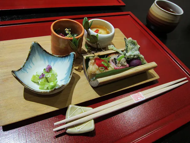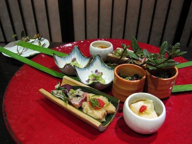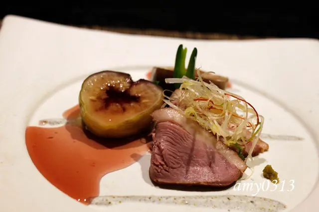 台北燈燈庵是來自日本東京有半世紀歷史且三代傳承的名店,海外唯一據點。為迎接在台五歲生日的新里程碑,台北燈燈庵將服務再提升,餐飲品質更到位。由日本總店指派來台駐店的廣中新輝主廚,秉持每月必換菜單的原則,這天嚐到以當令食材演繹盛夏節氣的會席料理,感受有如清流般的靜謚優雅。在高樓大廈林立的敦南商圈中,燈燈庵的白石綠葉有如城市中的綠洲。隔絕了塵囂,杜絕了高溫,帶來心中的一片寧靜。走進室內後,素雅清淨的空間,引進室外光線及綠意,心境一下就詳和不少。二樓的宴席包廂,至多可以容納二十四個座位。包廂以日式拉門與外隔絕,可保有隱密感。燈燈庵五週年特地全面換新服務人員的服裝,與日本同步引進日本傳統作務衣。顏色選擇以沉穩、質樸為發想,配合燈燈庵的自然共處、同自然相生的環境概念。純日式傳統服裝採自然流暢的剪裁方式更便於服務,也令專業服務更加到位。這天享用的會席料理是午餐<櫻 會席>$1980+10%。另外有$980,$1380,$2380的選擇。燈燈庵的懷石料理是結合茶藝、陶藝、花藝、廚藝,自然雅樸的盛盤設計,完美呈現燈燈庵獨特而極致野趣<自然流>日式料理風格。八寸 旬菜七品右上角的<梅香山藥>,滑順黏稠的山藥混合著梅子的清香。<新丸十>嚴選日本金時地瓜,加入萊姆與糖蜜煮入味,細綿口感中帶著萊姆酸香。<雲丹夕顏>夕顏為瓠瓜的日文,以昆布高湯醃漬並加以蛋黃海膽粉賦味,簡單高雅。<香魚南蠻漬>以洋蔥、蔥加上柴魚高湯、醋製成的南蠻漬醬汁,令香魚的風味更佳。<海老青龍椒>青龍椒添入自製蝦漿後油炸,浸漬柴魚醬汁入味,具豐富且細膩層次。<勾玉豆腐>燈燈庵每月換菜單,惟獨這道一直在菜單上,是道招牌菜色。將腰果研磨成粉與牛奶、鮮奶油、葛粉調製,再搭配枸杞及柴魚凝凍醬汁。實際上沒有豆腐,但口感綿密猶如豆腐,香味濃郁口感軟滑。<土佐秋葵>秋葵帶著柴魚高湯的香氣,加入蒸過的雞肉,以竹筒裝盛更顯清爽。旬魚五點盛合鮪魚腹搭上蕎麥苗,獨自以素雅的容器盛裝,更顯高貴的氣息。油花分佈均勻且油脂豐富,入口的鮮甜及香氣非常迷人。 玉蜀黍濃湯沒錯,的確是玉米濃湯,但這玉蜀黍濃湯絕顛覆傳統的印象。廣中料理長擅長台灣本土食材入菜,此次運用的是宜蘭豪野鴨胸。以冬瓜為底襯以鴨胸,另搭上皇宮菜、小番茄、茗荷絲及青柚。軟嫩的鴨胸似乎裹上了玉米粉的外膜,細細品味出蔬菜的芳香。每一口湯汁就像新鮮玉米剛拔下的香甜,還能嚐到柴魚高湯的鮮美,最後再加上青柚帶來一抹類金桔的酸香,這味道實在高雅且深遠。燒物 太刀魚炭火照燒此次五週年燈燈庵在燒烤料理全面使用備長炭,減少濃煙為顧客的健康把關。這天秀菜時,還特地點上火,令用餐現場更具氣氛。廣中料理長親自秀菜,為在桌邊為大家盛盤服務。夏季正是太刀魚最肥美的季節,瞧這厚實的魚肉,證明了當令食材的無敵。主廚採魚骨、日本醬油、味醂與砂糖赦製的照燒醬,再以備長炭大火燒烤,將魚身烤上了油亮的外表,醬香味濃,而魚肉入口回味出細緻甜美。太刀魚搭配的小菜是韭黃卷,以醋漬茗荷絲及芥末香醬汁醃漬,非常清爽可口。合肴 酪梨豆腐茶碗蒸採花蓮壽豐鄉無毒雞蛋、有機豆腐、美國進口新鮮酪梨,與柴魚高湯打成泥。加入蝦子、茄子及起司一起蒸煮,入口的起司及柴魚香氣濃厚,還有自然的鮮甜度。箸休 番石榴油醋帆立貝所謂箸休的寓意,在日本是讓筷子休息之意,意味著胃與味蕾稍作緩和。這本是晚餐會席料理才會出現,以其酸甜滋味平衡一整套會席料理的味覺疲乏。廣中料理長以台灣特有紅心芭樂打成泥狀後,以橄欖油、日本米醋與醬油調味。另搭以海帶芽、大黃瓜、帆立貝,紅心芭樂香氣清爽是停留口中最久的味蕾記憶。 強肴 本鮪蒜香幽庵燒據知幽庵燒源自江戶時期,是以醬油、味醂、清酒調和,再加上少許檸檬汁。選以台灣黑鮪魚背部油脂豐富部位,以幽庵汁醃漬入味,再裹上麵粉以蒜油香煎。最後淋上以洋蔥特調之自製醬汁,一旁搭上酥炸過的竹筍、火龍果花。帶著粉嫩的鮪魚肉塊,口感鮮嫩且帶著迷人的酸度,還有洋蔥及大蒜的香氣,搭著一旁以新鮮酪梨製成的酪梨蛋黃醬,鹹甜滋味非常令人回味再三。食事 鮎御飯鮎御飯附上味道厚實的味噌湯及酸甜漬菜。鮎御飯是香魚的漢字,因此主廚在日本冠軍米-北海道夢美人米拌入炙燒後的香魚,再加入香魚骨及柴魚高湯一同烹煮,其上點綴青紫蘇葉。米粒飽滿圓潤並具黏性,加上香魚及高湯的香氣,一口吃出精心調製的好滋味。西瓜芒果凝凍 雪瓜慕斯以新鮮西瓜原汁製成的凝凍混入新鮮西瓜果肉、芒果果肉,淋上哈密瓜製成的慕斯,當季水果帶來酸甜適中的滑順爽口,入口後更是消暑解熱。蜜桃甲州煮 藍莓優格自製的藍莓優格,加上台灣拉拉山新鮮水蜜桃以迷迭香、白葡萄酒蜜煮後切塊於其上。還有新鮮的藍莓搭配其間,酸甜的水果滋味是餐點最後完美的結尾。 燈燈庵獨特的自然流日式料理風格,令每一道料理就是一種風景。…查看更多