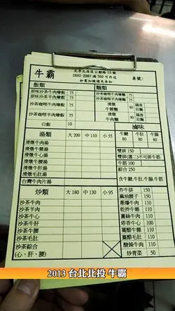牛霸小吃店 (台北) 網址: https://s.openrice.com/cHRSm022Mq200 地址: 台北北投區公館路13號 電話: +886 +886228922087