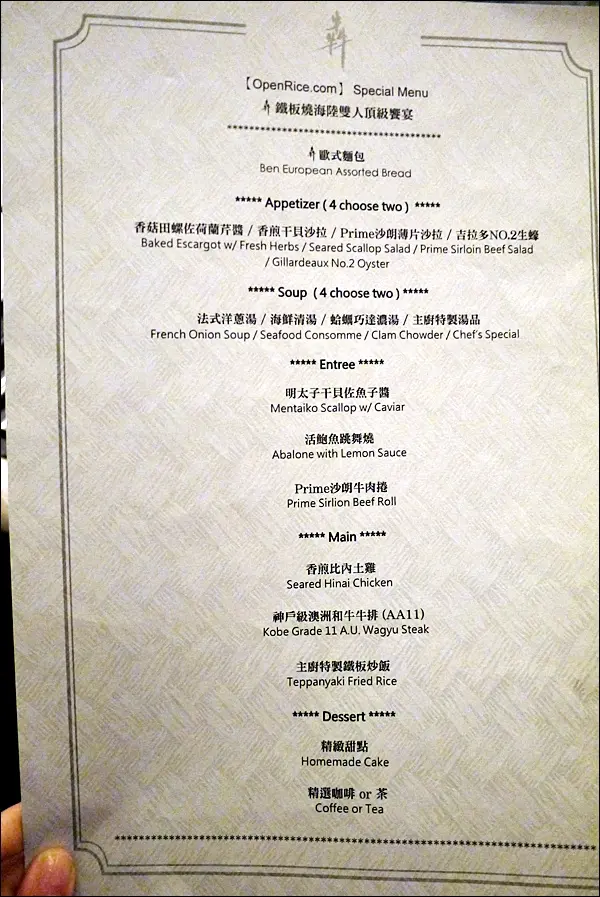 午餐食個普通的鐵板燒,去左“犇“。到個門口好似好勁,食落完來真係普普通通。先加個一份厚牛舌俾老婆,牛舌又唔係在我們面前煎?係在㕑房煎完先取岀來,奇怪。更奇怪,點叫厚牛舌呀~~薄到呢,同褔岡d先台牛舌厚度,疊埋三塊就差唔多。個洋葱湯太多油,牛肉巻一般,帶子又係濫用魚子醬和黑松露醬,老婆叫個煎紅魚仲腥。牛漢堡一般,鮑魚點解要畀咁多海藻配上去,unbalance。到主菜和牛,得四粒,玩骰盅咩。炒飯各人一小碗,佢炒多咗嘅就放喺隻碟度,成張枱嘅人你眼望我眼都唔知點樣出去再裝。甜品要行去第二個區食,另叫個心太軟生日蛋糕畀老婆,最正常係呢件,不過係要加錢。其實二流做第一,好過一流做第尾。食過都冇下次,大家可以唔使考慮。…查看更多