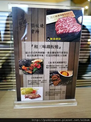 之前跟柯柯慶祝端午連假,訂好了從來沒吃過的犇 和牛館(和三味) ~來吃吃看鐵板燒啦軟西粉絲團http://fb.annkuo.org軟西痞客邦http://blog.annkuo.org軟西愛評網http://ipeen.annkuo.org軟西窩客島http://walkerland.annkuo.org軟西GOOGLE+http://gplus.annkuo.org其實我們一開始不知道到底是哪一間,因為這邊總共有三館啊哈哈走進第一間問了不是,走到第二間也不是,第三間的和牛館才是喔~哈哈簡直頭昏眼花了呀~詳細三館簡介也可以看犇的官方網站不過大致上的差別服務生也有告訴我們喔一店是西式鐵板燒,二店火鍋,未來可能也有考慮跟鐵板燒結合,不過還在構想中三店就是柯軟今天要吃的日式鐵板燒外面看起來黑漆漆的,結果裡面看出去還滿亮的呢!廁所門是木質的服務生帶我們到後方的小包廂,大約可以坐10人左右,今天除了我們以外還有另外兩組用餐雖然朋友們都說犇是大雷(哈哈哈哈),有點貴又還好,不過軟西柯柯都是抱著沒吃過吃吃看的心情來吃每家店的~這個小角落一直讓我有種在某個人家裡的錯覺哈哈哈坐定位之後可以先看到餐巾、濕紙巾、衛生紙等等都是犇連餐墊上面也有呢!桌上的洋蔥末跟莎莎醬杯墊也是喔哈哈菜單很簡單的只有兩面~不過軟西柯柯這次是買gomaji的和牛雙人套餐(NT1980)詳細犇菜單的話可以用官方app查看~軟西手機截圖犇菜單在這邊喔水是evian的喔首先先上來的是前菜的麵包旁邊的松露奶油醬超香濃而且甜甜的好好吃~跟歐式麵包絕配啊再來是前菜,總共可以二選二,想當然我們就是一人選一種囉這是鮭魚卵蒸蛋~上面鮭魚卵是軟西最喜歡的晶瑩剔透多汁鮮美的另一項是嫩煎和牛牛舌沙拉選用的是澳洲和牛舌根的部位,看這上面亮晶晶的細緻油花~好期待呀裡面是洋蔥末,配著牛肉一起吃軟嫩得宜QQ彈彈好吃湯品也是二選二,這是法式洋蔥濃湯,不會太過濃稠像醬汁,反正我們後來喝的洋蔥湯都不會比茹絲葵的糟就對了哈哈另一項是比較清爽的山藥干貝湯裡面有北海道大干貝還有超大片的山藥哈哈哈,口感十分細緻滑嫩,湯頭清甜鮮美再來就是犇和牛綜合握壽司拼盤從左至右是海鱺魚、紅甘魚、和牛服務生也特別提醒要從左到右吃噢~因為這樣味道才是淡到重下方的紫蘇葉也是可以吃的裡面軟西最喜歡和牛哈哈哈,雖然味道比較鹹但是夠重好吃沒多久送上主餐盤子,深顏色的是風味鹽(有炭烤味),淡粉色是玫瑰鹽然後吃鐵板燒很過癮就是師傅都會在面前大展身手啦哈哈沒多久香煎比內土雞就端上桌囉外皮煎得金黃,雞肉紮實有嚼勁再來是紐約客牛排選用美國Prime等級紐約客牛排~看這紅通通的牛肉就讓人口水直流啦哈哈,肉質滿細嫩的,但是好像還是雞肉略勝一籌?哈哈黃金炒飯,旁邊還有配台灣味的醃蘿蔔其實不要小看這些菜,吃到這邊軟西已經有點飽了哈哈但是甜點上來還是馬上吃光光!(哪招)甜點也是二選二,一個是古早味芋泥冰淇淋一個是草莓芝士雪糕這會讓我想到之前去CU cafe吃的草莓起司蛋糕~~讓軟西念念不忘啊甜點部分表現可圈可點,但覺得份量有點小(咦?剛剛不是說吃飽囉?)飲料部分兩種可選咖啡或茶軟西都不能喝所以都是柯柯的整體來說表現不錯,可是不知道很多人不推的原因,是不是因為以這個價錢來說,覺得好像又沒有這麼有價值,東西不難吃但感覺可以再精緻一點,例如最後的茶或咖啡沒有可選擇的,就是茶或咖啡哈哈聽朋友們說也滿常在gomaji上面看到特價餐券的,要吃之前也可以先看看喔-----店家資訊-----犇 和牛館(和三味) 犇和牛館地址:台北市安和路一段102巷4號之1犇和牛館交通:捷運淡水信義線(紅線、2號線)信義安和站1號出口犇和牛館電話:02-27552671犇和牛館營業時間:11:30–14:30, 17:30–22:30查看更多