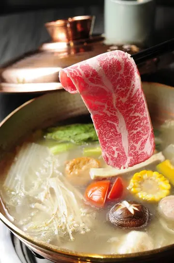 冬天吃鍋囉~~~!!! 寒流一波波~~天氣那麼冷看到滿滿的一鍋 還沒吃就先暖了起來!!因為長居美國的朋友R回台 太開心 怎麼樣都一定要吃吃好料聚聚才行 吃鍋的餐具走一系列的黑色風格氛圍上突顯犇應有的氣勢與高貴 沾醬:健康的和風醬油蘿蔔泥、香氣四溢芝麻醬 辛香料可以自己隨喜愛添加生辣椒、辣油、蒜泥 前菜三選一 我們剛好都選到了! 前菜有如一個美味饗宴的前奏 十分重要鮭魚卵蒸蛋 松阪豬沙拉 嫩煎澳洲和牛牛舌 四人份的菜盤蔬菜看起來都好乾潔又新鮮高麗菜、大白菜、青江菜、香菇、金針菇、杏鮑菇、玉米、南瓜、蕃茄、脆魚蛋、甜不辣、板豆腐、蒟蒻實在是料好多多~ 沒有那種大眾火鍋丸 是我最開心的事唯一比較類似只有手工甜不辣跟脆魚蛋 但這二款很好吃~~很討喜!! 昆布鰹魚豚骨鍋底乳白色的湯底 看起來好好喝~在這裡吃火鍋很享受 因為全程都有專人服務煮到最適當的熟度時 服務人員也會幫大家夾入盤中 偶爾有機會則自己動手撈撈想吃的料這是我第一次吃火鍋吃的那麼輕鬆自在啊!! 滿滿的蔬菜下鍋 而且服務人員擺的好好看哦~~~感覺快要滿出來了!!! 快讓我們消滅這一鍋吧~~~綜合握壽司拼盤雙人份 (S.R.F極黑和牛+二種時令海鮮) 蔬菜鍋吃了一輪後送上握壽司 嗯~~這真是一段美麗的插曲鮭魚好吃 海鱺魚炙燒過也美味 S.R.F極黑和牛炙燒三分熟更讓人讚不絕口! 近江級澳洲和牛丸 插曲唱完要換主弦律了吧!!和牛丸漿的顏色都那麼粉嫩漂亮~油脂豐富 牛肉共有二盤 每一盤是二人份 PRIME頂級牛小排 (左四片) 、S.R.F極黑和牛(右四片) PRIME頂級牛小排油花分布廣又均勻下鍋涮時服務人員會詢問五分熟是否可以接受?! 我們一至OK!! 真的入口即化油脂兒香~ S.R.F極黑和牛 油花分布的很漂亮 肉質非常好五分熟入口嫩度有之外也非常有口感 不會切得太薄而沒有存在感 比內雞(四人份)有些地方會用台灣土雞充當比內雞這天我特別問了服務人員 確定是來自日本的三大名雞 比內雞無誤!!選用的是腿肉的部分 吃起來果然特別彈牙好吃! 煮熟後的牛肉跟比內雞 全都沒拍照就急著下肚了~~現在想想...啊~~那粉紅色五分熟的牛肉真應該拍一下!! 肉都吃完了 服務人員把湯上的雜質全都撈乾淨 準備要來煮我們的副食:烏龍麵 這烏龍麵看起來就一副好Q彈的模樣 服務人員會選我們要吃乾的還湯的哦?! 原來還可以選~~ 左邊是湯麵 右邊是乾麵而且在吃涮肉時服務人員就跟我們告知會留一塊肉到時幫我們搭配烏龍麵用 烏龍湯麵 因為煮了好多的蔬菜及鮮美的牛肉 哦!! 這湯頭真的有夠讚!!我平常很少喝火鍋湯的~這回破例了!烏龍乾麵淋上了芝麻醬頗有和風味 看到了粉紅色的牛肉了嗎?!若真要的選 我個人覺得湯麵比較好吃! ^^ 餐後甜點紅豆抺茶冰淇淋 冰淇淋抺茶味尚可 熱紅豆湯不會很甜 紅豆湯很香很綿密 想看更多美食記錄請見Cindy的彩色筆記本 http://beautychu060.pixnet.net/blog查看更多