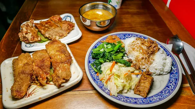 雖然《玉林雞腿大王》招牌上面寫著60年老店,但事實上從民國34到現在的《玉林雞腿大王》已經有70年以上的歷史,許多老台北人或觀光客還給與「台北最好吃的雞腿飯」稱號,在西門町雞腿飯與排骨飯的一級戰區裡面,《玉林雞腿大王》能生存那麼久,一定有其特色在,才能這麼讓那麼多人喜愛。西門町超過一甲子老店玉林雞腿大王西門町一帶賣雞腿飯跟排骨飯的真的不少,以前在這附近當兵也吃過幾家,東一排骨我只敢外帶,室內環境我覺得太悶,我真的不桿去,金滿園還沒吃過,但《玉林雞腿大王》點過幾次,當兵沒啥月薪水,吃超過100元的《玉林雞腿大王》便當也是偶爾心痛,但能開超過70年就是有它厲害的地方!《玉林雞腿大王》就在捷運西門站6號出口附近,步行約3到4分鐘。《玉林雞腿大王》不論內用還是外帶都有提供免費例湯,內用旁邊有碗可以使用,有塑膠碗跟不鏽鋼碗,不鏽鋼碗裝湯會很燙要小心使用,《玉林雞腿大王》的醬料也是在這一區,除了醬油、白醋、辣椒與胡椒之外,還有店內招牌的酸甜醬。好吃的台北雞腿飯玉林雞腿大王菜單價格玉林雞腿大王菜單就有分成內用跟外帶,主要就是外帶便當,主餐的部份就分成雞腿飯、排骨飯、鱈魚排飯與蝦捲飯四種,價格從130元到150元不等,都會附上三樣配菜,也可以做成酸菜麵,以雞腿便當或排骨便當來說,這個價格是算中上了啊,另外玉林雞腿大王菜單還有像是炸豆腐、花枝丸、甜不辣、杏鮑菇與燙青菜等等小菜。配菜與滷肉飯扣掉單點價格,配菜加上滷肉飯大概是60元,有滷肉飯跟三種配菜,老實說可以了啊!配菜看起來是乾淨的,味道上也沒有那糟糕,是可以的。滷肉飯還不錯還有辣菜脯,滷汁不是鹹甜濃厚那種,是比較偏乾一些的,有一點像是瓜仔肉飯的感覺,加上辣菜脯一起吃比較沒有那麼單調。雞腿飯 NT$150元/單點雞腿 NT$90元炸雞腿基本上沒有太大問題,雞腿處理的很好,裹粉也裹的很棒,整個炸衣很酥脆,光是吃皮的部份就有脆的聲音,很無敵啊!有做了一些調味,所以在味道上很足夠,雞腿肉本身也有少許肉汁感,不是那種炸到會鎖肉汁那種,但一定要淋上酸甜醬,入口的甘味會讓雞腿層次拉出來,最後還有酸的尾韻,是很推的雞腿。排骨飯 NT$140元/單點排骨 NT$80元排骨的肉偏薄一些,裹粉粿得很密,是從傳統那種,不會外層是外層肉是肉,咬起來是軟嫩的口感還帶著外層的脆,有微微的油耗味,加上特製的酸甜醬,吃起來比較甜一些,而且帶有濕潤感,口感上不完全是軟嫩,是有一點韌度,偏柴一些些,相較雞腿來說,我會比較喜歡雞腿。吃完《玉林雞腿大王》後覺得真的有中上水準,裹粉裹得超好的,不會皮是皮肉是肉,再來就是那個招牌酸甜醬,讓炸雞腿跟炸排骨吃起來不會太單調,只是《玉林雞腿大王》價格真的是偏高,幾乎是每年漲的態勢,這也是《玉林雞腿大王》最常被抱怨的事情,在現在人力跟食材成本都上漲的狀況下,餐點價格能不漲嗎?你們覺得這樣子漲價是合理的嗎?還是不合理?…查看更多