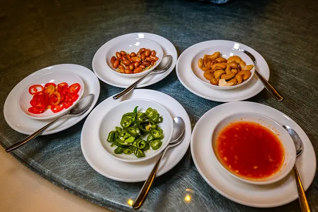 珍寶海鮮Jumbo Seafood是得獎無數的新加坡餐廳,於2017年底登台,以招牌的辣椒螃蟹、胡椒螃蟹及各式新加坡經典名菜,令我們不用飛新加坡,就能享有這些珍饈佳餚。珍寶海鮮2019年推出平日超值套餐,將30年熱銷名菜與年度新菜全搜羅,以$550/人就享有金沙蝦球等得獎名菜,而只要$990/人就能大啖活蟹料理。台北信義店及台中中港店同步,都可輕鬆以親民價嚐到新加坡美食,真是令人大呼過癮!來自新加坡的珍寶海鮮創立於1987年,以新鮮美味的海鮮美食吸引了許多在地與海外饕客,其中更以辣椒螃蟹和胡椒螃蟹為領軍招牌菜,逐步打響珍寶海鮮品牌知名度,以此開始設立更多分店。2017年底登台後,開了台北信義店,不久也開設了台中中港店。艾方妮這個海鮮控,如此深愛著螃蟹,於是這天得知珍寶海鮮祭出3~6人超值平日套餐,親民一口價每人550元或990元,就能吃到30年熱銷名菜與年度必吃新菜,於是就揪了好友來品嚐這平日才有的超值套餐。而另一邊則是一整片牆的水族箱,一格格的箱子中,放的都是活跳跳的海鮮,看了實在好誘人啊!走進珍寶海鮮的店內,發現十分寬敞,以方桌圓桌來配置不同客人的需求。桌距之間都有保留空間,這天遇到推娃娃車或輪椅的客人,也都很便利通行。這就是我們當天所選的平日樂享鮮蟹四人套餐,每人$990+10%。除了茗茶之外,還有包含螃蟹等七道料理。平日套餐菜單請點我。這檸檬水是洗手用的,可別當成茶喝了XDD這天的茶,我們選的是鐵觀音,清香不厚重,搭配餐點很適合。這個醃漬的青辣椒,卻是一點辣都沒有。但醃漬過的酸甜,有點像台式泡菜,是很開胃的小菜,對於之後味覺的轉換也很有幫助。這整桌菜就是我們平日套餐的內容喔!四個女生吃來也是很有飽足感的。生撈海蜇海蜇皮跟小黃瓜切細絲,醬汁的風味是酸甜帶點小辣,輕脆可口很開胃。翡翠豆腐這道料理上桌時,滿滿的菇類勾了薄芡,吃來是沽溜鮮滑。但這個其實是雞蛋豆腐為底,上面則是自製的芥蘭蓉,令只是軟嫩的豆腐多了青菜的營養,菇類的醬汁也令豆腐更有滋味。荔茸鮮干貝一般荔茸的做法多出現在粵式料理,最知名的就是荔茸金酥鴨,而新加坡本來就是揉和多元移民與文化的移民國家,造就獨特的<混血料理>。這道把新鮮干貝的外層,裹上了芋泥油炸,外皮的油酥炸得彷彿就像一個小鳥巢。咬下後,油酥相當酥鬆不油膩,綿密的芋泥香氣十足,而干貝的新鮮及甜度很討喜,滿口的層次相當豐富,我們都非常喜歡。桂花炒麵在粵式料理中有種把雞蛋炒成桂花狀的料理功夫,講究熱度及料理過程中不斷地拌炒。這盤桂花炒麵有蛋、干貝、蝦子、花枝、豆芽及蔥段,一旁還放了許多高麗菜絲,吃之前先拌勻。以馬來海鮮醬大火快炒,帶點沙爹及叻沙風味,海鮮鮮美香Q,微辣的滋味更是引人食慾。麵條吸附了香辣且略有酸甜醬汁,吃起來超涮嘴。這個如果平常午餐或晚餐,一個人來上一盤都沒問題。蒜蓉當季時蔬套餐中這道炒時蔬,是清炒或蒜蓉二選一,我們選了後者。蒜蓉炒空心菜,相當家常,鑊氣足就好吃。摩卡排骨這道摩卡排骨是艾方妮拜訪前就相當期待的料理,因為曾在旅遊節目中看到,就很好奇這樣的口感。摩卡排骨一上桌就飄散著咖啡及焦糖的的香氣。首先排骨炸得酥香,裹上油亮亮的醬汁,賣相實在太討人喜愛。醃漬過的排骨先炸至酥嫩,再淋上以咖啡及可可為獨門的醬汁,這本是珍寶海鮮內部廚藝比賽中的創意菜色,後來躍身成為固定菜單,亦成為來到珍寶必點的經典。一咬下可以嚐到豬肉很新鮮紮實卻又軟嫩多汁,甘甜中帶些咖啡及可可的香氣,唇齒留香令人吮指回味!黑胡椒沙公其實在辣椒螃蟹及胡椒螃蟹兩者中,猶豫不決!但因之前曾在另一家新加坡料理餐廳,吃到的辣椒螃蟹是偏甜的,覺得辣度不過癮,於是最終決定挑戰辣度較明顯的黑胡椒螃蟹。四人套餐中的沙公,挑選的重量不小於800公克,將沙公以黑胡椒及奶油大火燜煮翻炒,讓醬汁的香氣完全地裹附在蟹肉之上。沙公其實都事先處理過,因此以附上的手套,輕輕一剝,就可卸除外殼。瞧這新鮮的螃蟹,輕輕鬆鬆就可取出完整螫腳。這沙公新鮮度在一入口即見分曉,絲絲纖維細緻且天然的鮮美,另帶著濃厚的黑胡椒香氣,及微微的奶油香甜氣息,味道濃郁且重,適合來碗白飯。這隻沙公獲得我們極好的評價,難怪可以攻佔海內外許多老饕的味蕾。…查看更多