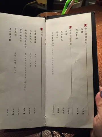 這家甕也燒肉我蠻推薦的,之前去過一次,食材算好,服務更好,在台北有幾家分店,要去也很方便約了一位之前在台北政大讀書的泰國朋友見面,想吃烤肉,想去的兩家都說我想去的時段沒位了,這裡的高座位還有位置。不過我覺得,坐高座位非常不好拍照,因為烤爐是貼近桌邊價位屬中價位,不算貴。我們因為還要去別的地方繼續吃,所以沒有點飯團之類的飽肚食物看照片以為這個是啤酒, 這是朋友點的烏龍茶, 我點來啤酒. 這邊的飲料蠻大杯的椒鹽霜降豬 (NT180),所謂的霜降豬、松板豬,其實是香港人講的豬頸肉。肉質是有別於豬肉的其他部份,較爽,但我覺得這個肉跟烤肉醬或梅醬會較好,因為肉味比較不夠整頓晚餐都是店員幫我們烤的,我們坐享其成就可以了 XD薄荷醬羊五花(NT160),我們有點牛舌,但照片不見了 lol 這是羊五花,以我記得他們的羊應該沒甚麼羊肉的膻味,因我沒有太深刻印象~ 薄荷醬不是平常吃西餐的那種甜薄荷醬, 薄荷味沒有很重芥末奶油去骨雞腿肉 (NT160) 雞腿肉烤完之後蠻嫩的,芥末奶油的味道非常香,芥末味道不會嗆,也是好吃烤肉醬牛五花,喜歡這裡的烤肉醬,不是很濃又很鹹或很甜的那種,味道剛好,鹹甜都不會太超過。肉質也夠嫩,店員都很會烤,要吃焦一點記得要跟他們說最後點了他們的綠花椰起士燒(120NT),我還以為是那種鋁箔紙放在爐上烤的那種,原來是一早在廚房烤好給我們吃。滿滿的起司包著綠花椰,綠花椰也沒有烤過熟,很難不好吃這樣吃大概每人750NT左右,其實我是吃到八分飽了,相信如果多點一客米飯類的東西就可以吃很飽。店員很熱心為我們服務,是一家我覺得能再去的燒肉店呢…查看更多