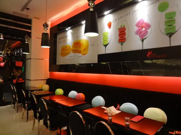 愛吃馬卡龍的moni又要來 po 一下最愛的馬卡龍文拉!! 最近吃了一堆甜食,感覺要有一陣子吃點鹹的,免得血糖過高對年輕人也不好。這家馬卡龍,是moni目前吃過品質蠻高的一家喔~ 不過地點在內湖算是比較遠的地方,比起東區甜點店的重鎮,這間店其實算是蠻隱密的,離捷運站有段路。我發現許多作甜點的老闆都是由科技業轉為這項產業的,老闆在法國與馬卡龍邂逅,而馬卡龍的酥香,使老闆決定將這份感動帶回台灣。這間的老闆結合了時尚和精品的感覺, 使你一進門就感受到百貨櫥窗般的奢華感。壁板的設計,也使用手繪風和巴黎鐵塔來象徵馬卡龍緣自於法國這個國家。 店內的這盞吊燈,目前我看過這大的水晶吊燈,很像是天空中漫步著泡泡的感覺,讓人有置身在雲朵王國的輕飄飄感。 使用黑色的燈和沙發在襯托出粉色的牆面,整個色調很大膽 又讓裝潢看起來很高雅,兼具設計時尚感。背板有的馬卡龍照片,讓你看得心癢癢 進入這家店,你絕對不可能空手而歸,錢包到是比較容易有空的危機!!!黑色的長沙發上,擺滿了一顆顆圓圓的小抱枕拿起來猛然一看,發現是可愛的耶!! 真的愛不釋手,不過這個抱枕一個, 實在是要價不斐,而且有點不實用。 還是拿來拍照比較划算。 甜庄的禮品包裝很精緻,這點他們很講究因為他們的工作關係使兩人須時常在外面跑,常需要帶扮手禮給親友,禮物,變成很重要的課題。送出這項禮物並不在於它的價值,而在於它能讓收到者臉上充滿著幸福驚訝的表情。 櫥窗內不只販售馬卡龍,還有方塊蛋糕,各式小蛋糕,以及可麗露。 另一櫃就是專屬馬卡龍的,五彩繽份的色系,最深得我心了!! 看著酥脆冰涼的馬卡龍,好像在我眼前一直叫我帶他回家。 這是一定要的壓,買上來了兩盒。因為使用團購卷!! 有沒有超便宜!! 記得它如果沒有使用團購我也只買的下兩顆呀!!總共有五種口味 粉紅色還是我的最愛壓,每個的味道其實都不會太重,剛剛好淡淡的清香,不過吃太多個味道,就很容易混雜在一起,吃起來都只剩糖的味道。 來自高科技產業的重鎮的幸福味道,臨近美麗華的繁華,大家一起來嚐嚐馬卡龍甜蜜的滋味吧!! …查看更多