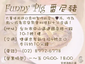 用餐時間:2017 .12前幾年台灣爆發的黑心油、黑心商品等等食安問題,讓創辦人Raymond十分憂心家人們的食品健康,於是便開始自己學習、動手製作鹹派,讓自己與家人都能吃得心安。越做越上手,Raymond 的手藝備受親朋好友的好評,於是他毅然決然辭去穩定的工作,創立了「Funnypig 番尼豬」,為的就是想讓更多人吃到健康、安全的食品。而品牌Logo上的那隻小豬——Funnypig 番尼豬,便是Raymond 的二女兒對爸爸創業的祝福,希望大家吃到這裡的派,就和番尼小豬一樣開心又快樂。目前成立三年的「Funnypig」,之前一直都是以網購形式經營,現在新開立了一家店面,也將中央廚房一同搬遷過來,讓顧客之後除了網購,也能直接到店裡採取外帶形式購買。店面位於建國南路上、台北科技大學的旁邊,從捷運忠孝新生站走過來大約十分鐘時間。法式鹹派(Quiche) 是我很喜歡的一道料理,自己也在家做過幾次。雖然看起來像點心,但其實包含蔬菜、肉與澱粉,營養均衡,可以直接作為正餐也完全沒問題。有點像是法國版的比薩,以派皮為底,裡頭的餡料可以隨自己喜好來加,飽足又好吃。而俗話常說 “好吃的東西不健康,健康的東西不好吃”,「Funnypig」就是以兼顧兩者為目標來經營。從做給自己家人吃的角度出發,將父母對孩子食品健康的問題化為品牌精神,同時也將這理念灌入商品——推出獨家愛心形狀的派,代表是用愛心去做的。他們堅持使用品質頂級的原料,像是法國與日本麵粉、法國奶油、智利紅藜麥、義大利橄欖油與紅酒醋、美國的起司與紐西蘭奶粉,都是從國外進口(來源詳情可參考官網),其他生鮮食品則選擇新鮮台灣在地食材,也不加入任何化學添加劑與防腐劑。「Funnypig」特地請來在國外米其林三星餐廳學過藝的廚師,製作與研發他們的派皮與餡料口味,反覆調整測試兩者的比例,以做出最佳口感味道。當天Raymond 帶我參觀了他們的廚房,因為派皮是獨特的愛心形狀,一個個都得手工捏製,比起一般圓形派皮更為繁複耗時。宅配或者外帶,都是用他們特製的盒子盛裝,厚紙板的材質不易凹損。而且每個盒子裡面都是專為他們愛心派的形狀大小去設計,所以派在運送過程十分穩妥、不易移動而碰壞!盒子上也標示了口味、製造日期、保存時間與營養標示,一目了然。另外,網購都是使用冷藏宅配,所以到貨後只需要加熱一下,馬上就能吃囉。大愛心派 NT$688/個,NT$1188/2個6.5吋的大派適合多人一起分享,和家人啦、朋友或者同事分食都很合適。▲蜜烤金山雙色地瓜藜麥甜派(甜派冷藏後毋須加熱,可直接食用)地瓜的好處大家耳熟能詳,而藜麥也是最近很受歡迎的穀類,它的蛋白質、礦物質與膳食纖維的含量都很高。所以這兩個的組合完全是超級腸胃蠕動劑,讓大家即使是在吃甜食,也要同時吃健康。雖說是派,但他們甜派的派皮做法與鹹派不同,其實是以塔皮的口感來做。最表面一層烤得香脆,但底部較為濕軟有些可惜。內餡是地瓜蛋糕,上面的擠花也是用地瓜泥做的,不會太甜,而且因為蛋糕非常紮實,所以小小一塊就頗有飽足感。小愛心派 NT$250/ 個,NT$488/ 3個小派3.3吋的尺寸,自己吃剛剛好。可以跟同學、朋友、同事一起合購,當作午餐或者下午茶都可以。盒子很可愛,特地設計了放置調味粉的格子。因為鹹派需要加熱,店家附的DM上有加熱說明,用鍋子或者烤箱都可以,不過果然是烤箱烤的好吃!加熱時建議從鋁箔盒拿出來,這樣底部跟旁邊的派皮也會酥香薄脆。▲北歐風蕈菇鹹派「Funnypig」目前推出的鹹派有三種口味,甜派兩種。這款是三種鹹派中唯一無肉的,蛋奶素可食。裡頭的菇讓口感豐富,而味道與香氣相對比較清淡,所以店家另外附上滴管,裡頭裝著我超愛的義大利酒醋,酸酸甜甜香香,可以隨個人喜好添加。▲眷村風湖南臘肉蒜苗鹹派嗯,有肉果然還是比較香(笑)。加熱之後飄散出陣陣蒜香,入口嚐得到醬油的味道,結合了台式特色。不過因為大半是馬鈴薯,我本身沒有很愛馬鈴薯,加上派皮比例較高,整體澱粉感有些厚重。所以灑了些店家附的辣椒粉、味道上會更有層次與變化。▲煙燻櫻桃谷鴨胸金瓜鹹派個人最喜歡這口味,因為我喜歡南瓜勝於馬鈴薯,顆顆。我對鴨肉的印象就是,常常又老又硬。不過「Funnypig」在食材口感的處理上很細緻,鹹派裡的鴨胸肉即使切成小片也依舊彈嫩;直接加入帶皮南瓜讓內餡口感更為豐富,而且以前沒吃過不知道,原來它和鴨肉搭起來如此合拍。「Funnypig」的愛心派在調味方面都比較清淡,選料也是使用天然營養的食材,份量與包裝精緻,自己吃很安心,作為送人的伴手禮也是個很不錯的選擇。*此為商業邀約文。內容均為個人真實品嚐感受。…Read More