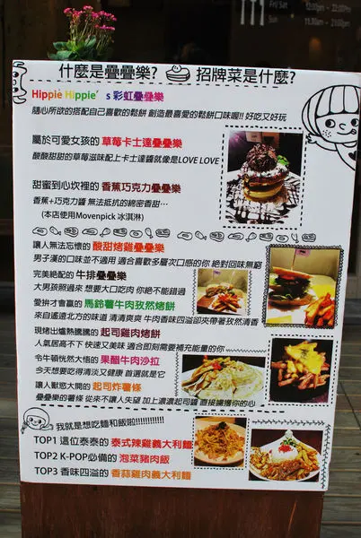 前一陣子突然對“鬆餅”很感興趣,家裡雖然早早買了鬆餅機,但一直沒有機會開機,寫這篇文章時才想起這件事,看來該找個機會拿出來玩一玩了,不過在還沒DIY之前,還是很想知道哪裡有好吃的鬆餅?忘了是在哪裡看到『疊疊樂』的介紹的,總之,就是被它那層層相疊的鬆餅給吸引了。這天造訪時才發現它就在黑米的旁邊耶~,來這一條路好幾次了,附近幾家知名餐廳也都吃過了,怎麼之前都沒注意到這裡有一家小巧可愛的店呢?店內裝潢頗富童趣,感覺有點像來到兒童餐廳。 桌上最引人注意的就是這一盒像積木的東西,它其實是鬆餅的menu選牌,喜歡怎麼搭配都可以,用積木來做選擇還挺有創意的。 各自點了咖啡和奶茶,飲料還行。 墨西哥薄餅 選擇了起司雞肉口味的薄餅,味道普通,沒有Friday's的薄餅來得討喜。  花生醬漢堡花生醬偏甜,漢堡肉有點乾,且吃不太出來肉的香氣,有點可惜。 辣雞翅沒有很辣但很酸,不太習慣那麼酸的辣雞翅就是了。  香蕉巧克力鬆餅不知道該怎麼自己搭配鬆餅也沒關係,menu上有搭配好的可以選。點了人氣第一名的香蕉巧克力鬆餅,鬆餅雖然厚度有,但口感偏乾,香氣也不足,有點小失望。 這天吃完『疊疊樂』時突然有種感覺,有時候好看好玩的東西不見得適合我們,不是它不好,只是跟我們不合罷了。…查看更多