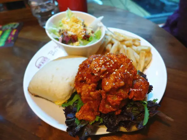 發福廚房, 這間店大概帶領了台灣近期的美式漢堡以及薯條的熱潮一間一間類似的店一直開, 它本身也開了不少分店會讓它那麼紅的原因, 當然最有名的就是花生醬漢堡和超~好~吃的美國馬馬鈴薯薯條這天來到景美店這間店在景美捷運站2號出口正對面這個巨大浩克應該算招牌了(笑)寬敞的座位區也有好坐的沙發區, 整個裝璜就超美式風格與其他美式餐廳較不同的是, 還有兒童遊樂區喔帶小朋友來也很方便●草莓蘇打與莫西多芒果蘇打 ( NTD 90 /杯)口味特別但好喝的汽水比起常見的可樂要有趣多了●本日餐點這天吃了起司肉醬美國馬鈴薯薯條, 凱薩沙拉, 轟炸水牛城藍起司醬雞腿堡●起司肉醬美國馬鈴薯薯條(NTD 168 )這道可以說是發福廚房的招牌菜很多人說這邊薯條好吃, 就是這裡它好吃的秘訣自然是因為採用了美國馬鈴薯美國馬鈴薯整顆切開, 炸過, 再淋上肉醬, 起司醬還有酸奶、莎莎醬~~滋味整個很豐富香氣實在逼人逼到角落去!而且薯條仍然酥脆不會軟掉雖然說這份熱量應該很誇張但就是好吃!!●凱薩沙拉(NTD 180 )很大塊的吐司角, 搭配起司,醬汁倒進沙拉裡稍嫌不夠所以是沾著吃的整碗份量很大喔後來想想, 這邊都是肉和起司, 確實需要它解膩●轟炸水牛城藍起司醬雞腿堡(NTD 295 )這也太誇張了, 雞腿排比起漢堡還大顆類似卡拉炸雞的雞腿排超大片, 上面灑滿了滿滿的藍起司視覺效果超強起司放的巧妙, 在適當的溫度下並沒有把炸雞皮弄軟可以沾醬, 不過其實直接吃就可以了搭配使用美國馬鈴薯炸的薯條也非常好吃夠長,完整, 油也瀝的不錯,馬鈴薯也好吃●總評可說是完全肥胖守則的店家每道菜都很肥美用美國馬鈴薯的薯條超棒…查看更多