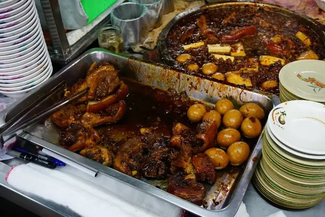 《矮仔財》可以說是台北滷肉飯的傳說神店,有網友是說《矮仔財》與今大及金峰並列台北前三大滷肉飯,其實看google評價,這三家評價數還真的是最多的,《矮仔財》再來還曾被CNN票選台灣非吃不可的小吃,但我總覺得這些外國媒體怎麼可能懂得評價台式料理呢?但真正來到北投市場後看到排隊人潮,才終於感受到《矮仔財滷肉飯》的厲害了。|北投市場美食矮仔財滷肉飯話說《矮仔財》應該在北投一帶無人不知無人不曉,放眼到整個台北市也是很多人都知道的滷肉飯,《矮仔財》可以說是跟高記茶莊並列北投市場裡排隊最多人的攤位,不管是平日還是假日總是滿滿的人《矮仔財》的位置是在北投市場二樓的436號攤位,從北投市場6號門樓梯上去就會看到排隊人潮,對了從捷運北投站走到北投市場只要6分鐘。老實說《矮仔財》排隊人潮一點都不誇張,不論是外帶還是內用都要排隊,我平日早上九點多到,已經排到樓梯間了啊!因為會留通道所以走道上不會排滿,會有一些人沒注意就直接插入二樓隊伍,我都很客氣說從後面排,《矮仔財》因為是在北投市場裡面,用餐空間也就是那樣子,真的很擠也真的不是特別乾淨,但用的是非一次性餐具,這點就很不錯。矮仔財滷肉飯菜單價格《矮仔財》其實沒有所謂的菜單,就只有攤位上面的價目表當做矮仔財菜單,賣的滷肉飯價格雖然有漲了一些,現在小碗是賣30元,但也是不會太貴,除了滷肉飯算是店內必點之外,像是湯品跟一些滷菜與小菜好像也都是必點,所以又點了排骨湯、紅燒蹄膀跟豆腐滷蛋,這樣子好像也才一百六十元左右,記得是排隊點餐結帳後再就坐,所以記得要一次點完。紅燒蹄膀 NT$60元紅燒蹄膀也是跟滷肉飯一樣的老滷汁去滷的,所以吃起來也是鹹中帶甜,但不會太過也不會太死,再來蹄膀都會帶皮,皮的吃起來Q軟,肉質部份則不會太爛,配飯吃也還不錯,旁邊都會放上辣椒醬,其實是甜辣醬,沾蹄膀味道會辣中帶甜,老實說也是很夠味。滷肉飯(小) NT$30元《矮仔財》最強就是滷肉飯,光是看滷汁肉燥的部份就覺很好吃,整個顏色非常對了,黑金黑金的好像很夠味,入口也是很對,原則上是甜中帶鹹,雖然肥肉的部份偏多,但味道上香而不膩,會在嘴唇上留下那帶有黏性的膠質,白飯煮的也不錯,不溼軟,也不會太乾,搭配的滷汁很容易一口接著一口吃,難怪會被人稱為台北必吃滷肉飯之一。滷蛋 NT$15元/豆腐 NT$10元滷豆腐一塊才賣10元,光看外層就覺得好像很入味很好吃,入口會有一點鹹度不會太過,口感是很嫩啦!但味道上總覺得還可以更好。滷蛋也還可以,就不難吃,但我覺得還是可以更入味一些會更好。排骨湯 NT$55元排骨湯是一盅一盅去蒸的,上桌前會灑上胡椒跟芹菜,第一口喝下去會有比較重一些的胡椒香氣,接著是很清甜的排骨冬瓜湯湯頭,整體味道不會太厚重,有鹹度卻也不會太過,排骨給的量也很足,肉算還是有軟嫩口感,不是久燉到入口即爛的那種。整體吃完《矮仔財滷肉飯》之後,真心覺得真的還不賴,那碗銷魂黑金滷肉飯黏綿感真的還蠻爽的,雖然偏甜鹹,但不會覺得肥膩也是相當的厲害,《矮仔財滷肉飯》排骨湯跟蹄膀也是蠻不錯吃的,唯獨滷蛋跟滷豆腐我覺得還可以更好,但我是比較喜歡店小二的口味,反正吃這種東西每個人還是會有一些落差不同,那你最喜歡台北那家滷肉飯呢?…查看更多