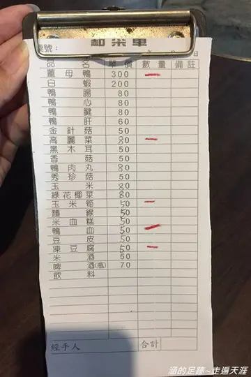 社子島是台北市很特別的地方,這裡是個半島,東側是基隆河,西側是基隆河,只有南端和台北市陸地相連。因為禁建,所以社子島沒有沒有高樓大廈,大多都是矮房子、工廠、農地,和台北市裡的景觀截然不同。進入社子島後沿著延平北路七段一路往前到延平北路九段最末端的社子島島頭公園,這裡是基隆河和淡水河交會處,可以看到關渡大橋、關渡宮、五股、蘆洲等等,風景很美。而在島頭公園的對面,有一間「河岸美食」,是小涵非常喜歡的餐聽,雖然沒有什麼裝潢,但老闆娘的手藝精湛,每道料理都很美味,坐在這裡邊吃飯邊欣賞美麗的河景,真的很幸福喔!河岸美食就在島頭公園正對面,已經在這裡10年了! 沿著綠色的河岸美食四個字的招牌往小坡上走就到囉! 來到這裡建議還是自己開車或騎車較為方便,餐廳下方的路邊都可以停車。或是許多人是沿著社子島的堤防騎單車一圈,騎到島頭公園時剛好可以到河岸美食吃東西休息一下。這裡是由鐵皮屋搭建而成,雖然沒什麼裝潢,但前方有美麗的河景相伴。店裡座位不少,除了半開放的鐵皮屋座位區,前方還有戶外區,這裡沒有冷氣,但有天然的河風吹拂。小涵來過好多次了,平日客人較少,假日時可是熱鬧滾滾,通通都坐滿滿喔!河岸美食是許多單車騎士吃飯、休息的好地方。小涵很喜歡坐在戶外區,感受微風吹拂,欣賞眼前的美麗夜景。唯一的缺點是夏天時有蚊子,但老闆娘有提供防蚊液可以噴一下。一排的紅色燈籠在晚上時很耀眼。從河岸美食看過去的景色,對岸的燈光倒映在河面上,好美啊!河岸美食是以中式熱炒為主,除了熱炒料理外,還有一些炸物、涼拌類的菜色可選擇。還有雞肉料理更是來到河岸美食不能錯過的美食,這裡的麻油雞是小涵最近吃過最好吃的麻油雞了。餐點價位相當平價,熱炒類大多介於100~250元上下,炸類更是便宜,甜不辣、臭豆腐、雞塊、薯條之類的小點心只要$50元。到了冬天還會推出冬季限定的薑母鴨和涮羊肉鍋喔!如果不知道要吃什麼時也可以請老闆娘推薦,老闆娘超親切,小涵目前吃到老闆娘推薦的菜色真的都很好吃喔!除了菜單上的料理,黑板上有時還會列出一些菜單上沒有的每日特色料理。最近除了熱炒類外,還多了一些燒烤料理,也很平價。以下就是小涵吃了許多次後,點過的菜色大集合,因為大多都是用手機拍的,有些照片比較暗,請多多包含。自從去年第一次造訪河岸美食後,幾乎每1、2個月就會吃一次,就知道小涵有多喜歡囉!麻油雞 ($600)河岸美食的所有菜色中,小涵最愛的就是麻油雞了!這裡的麻油雞可以選半酒或是全酒,因為小涵大多都是開車去,所以不敢點全酒,半酒就很好吃囉!冬天點麻油雞時,會將麻油雞放在炭爐上加熱,夏天時因為天氣熱,所以沒有用炭爐,但裝麻油雞的鍋保溫效果很好,而且老闆娘說如果覺得湯冷了隨時可以再加熱,所以不怕湯會涼掉。這裡的麻油雞是真材實料,喝得出老闆娘是用品質很好的麻油和米酒來煮,上桌時香氣逼人啊!滿滿一大鍋有半隻雞,份量不少。這裡是使用仿仔雞,介於土雞和肉雞之間,沒有土雞那麼硬,也不像肉雞鬆軟,肉的軟硬度剛剛好,非常好吃!小涵有時會另外點一份高麗菜請老闆娘加到湯裡,高麗菜和麻油雞湯真的很搭。有時我們兩個人來,只點一鍋麻油雞配白飯就覺得很滿足囉!麻油雞湯的味道非常好,麻油香和酒香的比例剛剛好,好喝極了! 小涵覺得比台北幾家有名的麻油雞店都好吃。因為整鍋的湯真的很多,每次肉吃完,小涵都把剩下的湯打包回家,回家後自己再加雞肉或是麵線都很好吃喔!冬天裡來上一碗,真的好幸福啊!附帶一提,因為老闆娘每日準備的雞肉數量有限,如果是假日來用餐想吃雞肉料理的話,建議打電話訂位時先說。小涵有一次就是假日直接去用餐,結果雞已經賣完了,真的好傷心啊!炒飯 ($80)炒飯可以選牛、羊、豬一種肉。這樣一大份只要80元,真的很划算。一間店的好壞,從最簡單的炒飯就可以看出來了。河岸美食的炒飯炒的鹹香好吃,很出色。炒麵 ($80)炒麵一樣可以選牛、羊、豬一種肉。炒麵味道也不錯,但小涵更喜歡炒飯。炒青菜 ($100)每天的青菜可能都不同,可以先詢問老闆娘當天有什麼。這裡的炒青菜不會油膩,是家常健康的味道。炒櫻花蝦高麗菜 ($100)喜歡櫻花蝦的人可以點這道。煎菜脯蛋 ($100)圓圓一大塊。菜脯蛋裡有好多菜脯和蔥。但因為菜脯有鹹度,所以建議點這道時要配白飯,單吃會稍鹹。油雞 ($200)這裡的油雞類似醉雞,有冰鎮過,適合夏天吃。使用雞腿肉的部位,肉很嫩喔!煎虱目魚肚 ($200)這道也是小涵最喜歡的料理之一!虱目魚煎到赤赤,外皮酥,裡面肉很嫩,好好吃啊!虱目魚軟軟的肚真的好美味啊!炒羊肉 ($180)這道小涵也很推薦,河岸美食的炒羊肉火候剛剛好,羊肉很嫩,帶點沙茶味卻又不會過重。泰式皮蛋 ($100)小涵也很喜歡河岸美食的泰式醬汁,酸酸甜甜的好開胃啊!泰式松阪豬 ($250)這道泰式松阪豬就是老闆娘推薦給小涵的菜色,吃過後真的很驚豔!豬肉上面是滿滿的洋蔥與酸酸甜甜微辣的泰式醬汁。底下的松阪豬肉有先煎過,表皮酥脆,又有松阪豬的Q彈口感,很好吃喔!第一次吃到這樣的做法,不知道是不是老闆娘自己發明的,真的是道很出色的料理。喜歡小涵文章的話,請給小涵一個鼓勵,按個"讚"加入小涵的粉絲團,隨時掌握最新的吃喝玩樂情報 「涵的足跡 走遍天涯」跟著小涵吃美食、玩遍天下燙蝦子 (