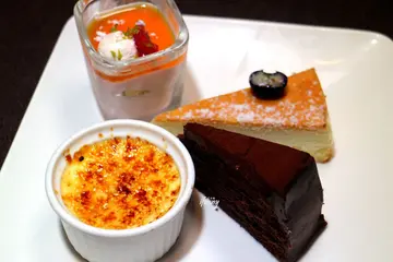 很久以前曾經到神旺伯品廊吃過下午茶對他們的現烤牛排+甜點印象很不錯不過因為價位偏高就沒來過了!這次剛好有銀行的優待券所以就又來品嚐看看了!幾年沒來伯品廊有重新整修!進入神旺大飯店後立刻有好幾個服務生幫忙開門問你要去哪裡飯店內裝潢十分豪華一進門的正前方就是伯品廊的入口說有訂位就進去了...餐廳內裝潢地比以前小一些一入坐就幫你倒好水....平常日晚餐伯品廊的消費方式是主餐+半自助吧套餐內容只有湯和主餐是要選擇的其他就是到自助吧自己取用煮菜價位就不便宜了從880元起跳到2400元銀行優惠內容是980元的碳烤澳洲菲利牛排買一送一剛好也是我想吃的!裝水杯的杯子很有藝術風格平常日晚上大概也有20多位客人左右不過環境十分清幽不知道跟平常日有沒有關係很有放鬆的感覺另一邊的坐位可以容納較多的客人當天的客人都坐在靠近自助吧的地方在伯品廊內感覺完全跟東區的繁雜隔離開了服務生送上來的一人一份的蝦手捲上面鋪滿炸得酥酥的蝦子還有加了清甜美奶滋的苜蓿芽等只是海苔有點不太脆桌上還有提供手部清潔消毒劑..另一邊還有歐風廊柱設計以及很漂亮的壁畫氣氛整個感覺都不一樣了服務生送上來的一個人一個的麵包不過這個麵包小失敗我比較不喜歡吃加了蔥味的麵包吃了一口感覺口感也還好就沒吃了於是先去自助吧拿一些餐點自助吧東西不算太多小小一區基本上就是沙拉前菜還有甜點飲料有一些基本的蘿美生菜+凱薩沙拉還有生鮭魚片味道都維持正常偏細緻水準還有煮得軟軟甜甜的芋頭中間我點的奶油龍蝦濃湯上來了湯頭我覺得喝起來很特別喝不太出食材熬成的湯頭不像海鮮湯也不像奶油濃湯味道還可以只是有些單調龍蝦部分大概有個5.6塊吃起來有點小脆雖然加在濃湯中還是可以吃到一些龍蝦的甜味再拿一輪前菜他們的五味貝類 (不知道是什麼貝)也很好吃酸酸甜甜地十分開胃泰式口味的青木瓜絲青木瓜絲很脆很甜醬汁也很入味還有清爽微甜的小白筍(有加一些香料提味的感覺)吃到這事實上對他們的自助吧評價還滿高的雖然東西不算多 (另外還有些生魚片啦 不過我沒有吃)不過每樣東西都吃得出用心和細緻度每道菜感覺都有細心去調味可以吃出一些不同的調味香炸蝦部分重點是下面還有鋪一些蝦仁+蛋沙拉的感覺味道還不錯重點的主菜上來了!菲力牛排5分熟在牛排上面灑些沒有味道的蔥段增加視覺饗宴本來看到他直接幫忙淋上醬覺得有點可惜不過還好原來是紅酒醬汁(如果是黑胡椒醬我就吃不太到牛肉的原味了)切開後太讚了!微微的血水但是不會流出來顏色很漂亮!試吃一口後牛肉的口感剛剛好嫩但是又有一些咬勁牛肉本身的鮮甜味搭配溫順一點點酸的紅酒醬汁整個口味感覺就是很順和之前牛排喜歡吃加粗鹽那種也很好吃但是味道上就是偏比較重強的口味配菜是烤馬鈴薯+脆餅是美式風格嗎?不過都是現做的也都不錯吃本來以為客人就是在坐的客人沒想到用餐到一半突然湧進大量的人來取用自助吧不知道是參加什麼活動的人吧不過餐廳都會補菜所以還好水果部分也有不少選擇不過我只想吃芒果芒果很大方切成長條狀而且好甜好好吃!甜點部分我就只拿了這一盤後來因為實在是飽得再也吃不下了!不然...他們的甜點真的好吃阿!!左下方的有點像是奶酪+蘭莓醬味道很清爽烤布丁布丁味道很濃很甜不過也不會太膩起士蛋糕先給結論---好吃綿密濃厚的起士香氣還有底層脆脆的餅乾拿了兩塊雖然很飽還是都吃完了!提拉米蘇蛋糕也是好吃綿綿細緻微涼的乳酪配上濕軟的巧克力蛋糕體甜度適中本來以為很飽吃不下了結果又吃完了實在太飽不然很想再吃起士蛋糕和提拉米蘇(不過他另外有用小酒杯裝的甜點   像是芒果醬+奶酪  但是真的太酸了 唯一的敗筆)最後喝個飲料吧他們有咖啡茶類還各種果汁茶包有帝瑪和立頓的我在挑選帝瑪茶包時服務生主動過來推薦她說草莓口味的香胃很多客人都很喜歡我就選了草莓口味的+熱牛奶服務生主動說會幫我弄好送上來杯子有一般的白圓杯和造型杯一開始我就特地挑了有彩繪的杯子簡單優雅又漂亮的玫瑰花圖案送上來後草莓的香氣真的很濃很香甜!實際喝起來倒是還好不過因為泡得太久了所以茶味有點澀桌上有紅糖可以加從6點吃到9點整個環境十分安寧舒適服務生收盤子都很迅速但是也不會給你壓迫感主餐還有半自助吧的餐點都有一定的品質除了原價位有些小貴偶爾還是可以再來光顧離開時拍了一下他們的大水晶燈!下次有機會希望還能再來神旺伯品廊用餐!查看更多