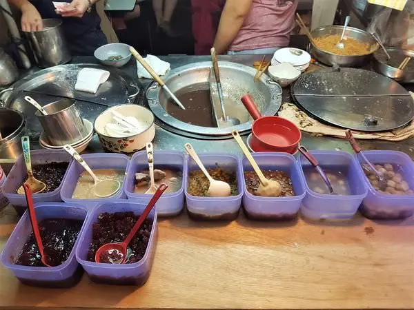 寧夏夜市裡的美食好多,想到時就會來這裡吃晚餐,大家來寧夏夜市都吃甚麼!?來到寧夏夜市我們很常造訪的是環記麻油雞,陸陸續續來吃過好幾次,前陣子終於有特別寫文紀錄!最近天氣熱呼呼,我想很多人都想吃冰,我們也不例外,尤其是吃飽飽見到邪惡的麻糬冰更是抗拒不了,管它是否會胖都還是要來一碗 XD寧夏夜市裡的麻糬冰攤位好像有兩攤,不過造訪的這天只見到【祥記橋頭客家純糖麻糬】,生意相當好,人手一碗冰冰熱熱的麻糬冰,看得我心癢癢,趕緊坐下來點餐~寧夏夜市裡的祥記橋頭客家純糖麻糬是延三夜市的分店,是24號攤,在比較靠近前頭的位置,走過路過很難錯過,因為那一鍋燒呼呼的圓滾滾麻糬好吸睛除了販賣燒麻糬之外也有麻糬冰可選擇!在滾燙熱水裡噗哧噗哧的白色麻糬,看著看著覺得好療癒除了賣麻糬外也有其他冰品及花生湯、紅豆湯,冷的熱的隨你挑,雖然天氣熱呼呼不過發現還是有人喜歡吃熱的呢祥記橋頭客家純糖麻糬菜單及價目表若是想吃豐富點的話,可以選擇原味麻糬再加料,加上紅豆、芋頭、大豆等,原味麻糬冰有分大小碗($70/45元),大碗有兩顆麻糬,小碗則是一顆麻糬,價差$25元附上一段隨手拍影片給大家看看~麻糬冰(大) $70元兩顆麻糬剪一剪份量也不少...上面的粉可以選擇花生或是芝麻,應該也可以選擇綜合原本想說這燒麻糬碰上冰應該很快就融化,結果還讓我拍照拍了好一段時間還沒融化耶~可能是因為有沾上花生粉關係吧!看似很簡單的一碗冰,最主要就取決於麻糬的口感了~將燒麻糬剪成一口大小裹上花生粉後放在淋上煉乳的刨冰上,吃起來究竟會迸出甚麼滋味!?沒吃過的人一定很好奇!大家應該都有個疑問~麻糬碰上冰不會變硬嗎!?告訴你~~真的不會,就算真的冰掉後也只有表皮有些微的硬唷,裡面依舊Q嗲嗲這麼紮實Q彈歸功於店家對於手工麻糬的堅持,採用傳統客家人作法,由磨米、泡米...堅持使用米漿做麻糬,有別於一般使用粉製作出來的麻糬口感刨冰內有加上煉乳讓整碗冰的味道更有層次,甜滋滋的又帶有乳香,冰的份量不多,個人認為吃起來剛剛好,麻糬跟冰一起入口好搭啊!綠豆煉乳冰最近兒子對綠豆湯深深著迷,一見到攤位上有綠豆便指定要吃綠豆湯,不過店家只有綠豆冰,雖然如此兒子還是幾乎吃掉整碗,我想加上煉乳一定是甜上加甜,因為綠豆本身應該有甜度了我超愛吃QQ口感的東西,所以一直以來我就很愛吃燒麻糬,目前已經有越來越多的店家都有賣麻糬冰,有機會大家可以試試看這燒麻糬+刨冰迸出的火花!若是對冰品接受度不高,那麼我想燒麻糬也是很棒的選擇,雖然天氣炎熱但還是蠻多人吃!以上為個人實際造訪品嚐後記錄分享,每個人喜好、感受及價值觀不同,僅供參考…查看更多