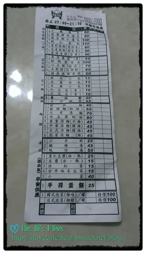 鄰近萬芳醫院,也是中國科技大學學生經常推薦的美食,早上七點就開始營業,有著平價版鼎泰豐小籠包的美稱。落落長的菜單,選擇相當多樣,主推的當然是小籠湯包囉!只要85元/籠,相當親民的價格,當然要點一籠來嚐看看跟鼎泰豐有沒有一樣美味,另外還有蒸餃點心包子類,也有蔥油餅鍋餅和麵食湯品,喜歡什麼就點什麼來吃吧!過了晚餐時刻的餐期,店內客人不多,感覺用餐的環境衛生,有待加強。點了一杯冰豆漿來解渴,沒想到喝第一口,就感覺到異味,酸掉了呢!好慘,第一次來就大大的扣分,跟年輕的妹妹店員反應豆漿酸掉,妹妹也沒有多說什麼,就換了一杯新的給我,但真的有陰影在,雖然換了杯新的,但我也不太敢喝了就是。餐具沾醬等等請自取,不知道是不是接近打烊時間的關係,一切的擺設感覺就是一個字~亂。唯一點的小菜,醃製的小黃瓜...沒有入味口感也不脆,以後還是別太晚來吃才是。元盅土雞湯 130元。雞肉好像老掉了,湯頭口感還不錯。擺得有點亂的小籠湯包.一籠七顆 85元。雖然價格便宜,但美味還是差了鼎泰豐一大截啊!豆沙鍋餅 60元。這餅上桌就是這樣不規則的形狀,到底問題出在哪?豆沙的內餡包的不多,所以也就不會有太甜的感覺,還算好吃啦!勉強可以吃完。乾拌麵 40元,就一般的乾麵這樣,沒有太多驚艷。這幾樣擺在一起,看起來真的是很平價的感覺溜~~這一次的消費明細,不知道是太晚來的關係還是怎樣,總感覺福鼎的湯包沒有傳說中像鼎泰豐一樣的美味,尤其是第一口就喝到了酸掉的冰豆漿,接下來的餐點要說有多美味,我看也是無福消受吧!…查看更多