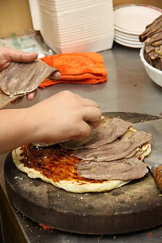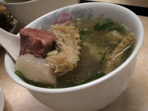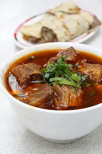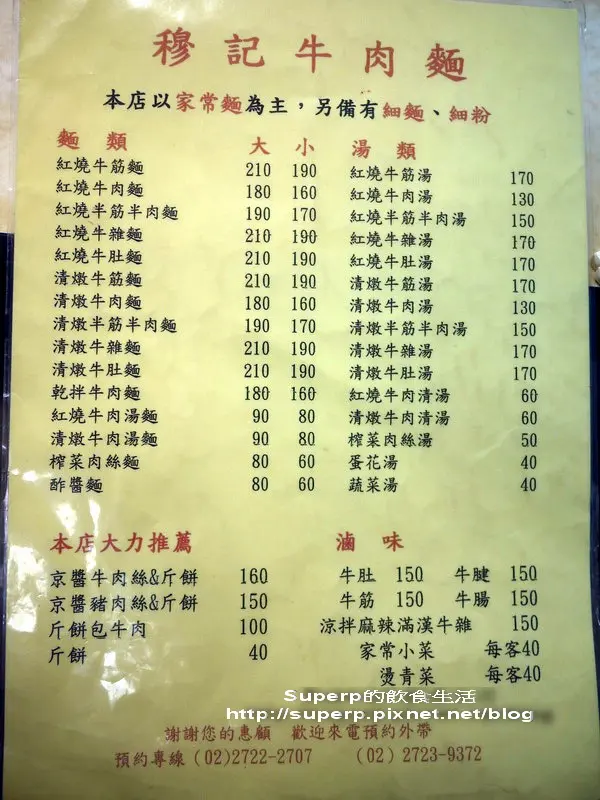 米其林必比登推薦台北牛肉麵《穆記牛肉麵》,就位於台北信義區吳興街商圈內,算是蠻厲害的台北牛肉麵之一,《穆記牛肉麵》主推紅燒跟清燉兩種不同湯頭的牛肉麵,光是網路上的評論就超過3000則,除了牛肉麵必點之外,網友也很推薦麻辣牛雜跟《穆記牛肉麵》斤餅,斤餅不論是包牛肉還是包京醬肉絲都非常好吃,也有人說比牛肉麵還厲害。|米其林必比登推薦台北牛肉麵穆記牛肉麵就位於台北醫學院附設醫院對面的《穆記牛肉麵》,可以說是吳興商圈一帶中午用餐時段人潮最多的餐廳之一,附近像是邱記涼麵與林家牛肉麵也是蠻不錯的吳興街美食,中午時間來《穆記牛肉麵》大概都要等一下,會有人員帶位跟登記,可以先拿穆記牛肉麵菜單,看看等一下要點什麼。《穆記牛肉麵》座位區分成一樓跟地下一樓,大概12點半來用餐,幾乎是全滿的,小菜是在一樓,所以到地下室前要先去拿想吃的小菜,《穆記牛肉麵》內用都有免費的熱紅茶,每一層都有,桌上也都有醬料,我覺得還不錯是門口一進來旁邊就有洗手台。|穆記牛肉麵菜單價格穆記牛肉麵菜單看起來選項很多,但其實點起來蠻簡單的,就先看你自己要吃紅燒還是清燉那一種湯頭,接著是要牛肉、牛筋、半筋半肉、牛雜或牛肚,除了麵以外也有單賣湯,比較不一樣的就是有賣斤餅跟京醬肉絲,反正就是一套,搭著吃的,再來也有斤餅包牛肉,整體的價格是偏高一些,但在台北市就正常吧!|穆記牛肉麵推薦必點麻辣牛雜紅燒半筋半肉牛肉麵 NT$250元來《穆記牛肉麵》點牛肉麵,沒特別說的話都是以家常麵為主,但你想吃不一樣的,還有細麵跟細粉的選擇,其家常麵有一點巷像是刀削麵,不像是正常厚度的寬麵,吃起來相當的有口感,非常有嚼勁而且很Q彈,搭配每天熬製的紅燒湯頭還蠻搭的,其紅燒湯頭並不會太辣,有淡淡的藥材香氣,喝起來是濃郁的,但會回甘,整體不會太油,真的還不錯。半筋半肉牛肉麵不像是阿忠牛肉麵是筋肉,而是給你一半牛肉一半牛筋,不得不說牛筋給的量還蠻多的,吃起來很Q還帶有一點黏性,處理的非常好吃,但是牛肉的部份就真的很不行,首先非常小塊,吃起來也有一點偏乾柴,口感非常不好,如果下次再來應該只會點牛筋麵。麻辣涼拌滿漢牛雜 NT$250元麻辣涼拌滿漢牛雜就蠻意外的超好吃的,非常推薦,但也是非常的辣,主要是麻味比辣感還再重一些,入口的感受是非常刺激,吃起來非常的爽,然後不同部位的口感都不太一樣,遇到牛肚真的是越嚼越辣,建議兩個人一起吃,一個人會辣到吃不完,但很過癮啊!《穆記牛肉麵》湯頭跟麵條真的還不錯吃,然後牛雜跟牛筋也是處理的相當不錯,但是牛肉就真的還好,這次沒有點到《穆記牛肉麵》網友推薦的斤餅跟京醬肉絲,下次有機會再來試試看,台北牛肉麵推薦《穆記牛肉麵》還是可以試試看。如果覺得哥介紹的不錯,那也推薦你的口袋名單給哥去試試。…查看更多