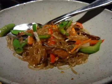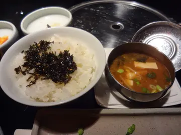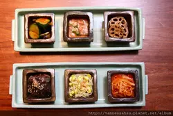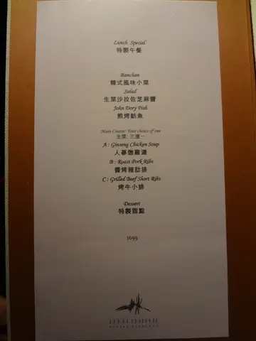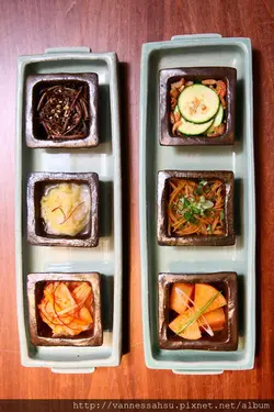 這家開在華視附近的BC韓式料理不明白為何沒有中文名稱....這家韓式料理是走比較高級精緻的路線很好奇所以剛好也買了團購券來吃看看  餐廳的地點很低調門口是在一個像是辦公大樓的1樓內 裝璜走時尚路線還滿有質感的 餐廳內有靠窗的座位區還有裡面的沙發區(還是沙發區坐起來舒服)不過不知道為何總有一種潮濕的感覺 今天是品嘗 "特製午餐" 的菜色有小菜,沙拉,煎烤魴魚,主菜還有甜點飲料699另加10%服務費 不然的話平常晚餐的價位雙人套餐就是2800元起跳囉! 桌面的擺設就滿有質感了餐具是韓式的扁筷子還有長湯匙 厚重有份量的餐盤上還有中文書法字只是文意不太明 各式小菜上桌小菜都是可以續的種類也不少可以問店員~一開始先上了一部份泡菜跟韓國吃到的有點像酸酸辣辣的 不太有甜味不過又比韓國吃到的味道較豐富不會有很單調的感覺 另外還有4款小菜其中以香菇口味最好每朵都又厚又軟香淋了些麻油味道更香最右邊的小黃瓜也還不錯脆脆的淋了些微辣又酸的韓式辣醬 後來詢問小菜種類之後又加了醃漬羅蔔不過有些太鹹了!! 續了香菇~ 小黃瓜 小魚乾十分地硬有口感 生菜沙拉佐芝麻醬比較有特色的是那個芝麻醬吧味道香濃 飲料先上了玉米鬚茶為何我喝冷的感覺有點像冬瓜茶阿~跟之前喝過的玉米鬚茶味道不太一樣 煎烤魴魚上面有3塊煎烤過的魴魚表層脆脆的魚肉有很軟嫩淋上微鹹帶甜的醬汁還不錯吃!! 下面有兩塊煎豆腐功夫也不錯外脆內嫩只是其中有一塊有點酸酸的 >< 主餐: 烤牛小排有擺盤有用心! 話說不太像烤牛小排耶吃起來比較像是牛肉塊然後口感有點偏難咬淋上了味道稍微有些單調韓式辣醬覺得有點普通 不過可以搭配下面有調味過的洋蔥絲拌菜雖然有些偏鹹不過口味調得很不錯鹹香帶些辣味口味十足 主餐: 醬烤豬肋排豬肉部分份量不少口感也很嫩(油的部份也不少) 主餐: 人蔘雞湯份量稍微少了點只有一隻雞腿湯頭的人蔘味淡淡的但是還不少~ 不用擔心吃不飽還有附白飯和味噌湯 味噌湯也是偏鹹了一點裡面豆腐豆芽很多實在 店家招待的韓國冬粉圓滾滾的很Q彈 甜點是紅豆湯圓紅豆湯是整個呈現泥狀口感相當不錯香甜不膩裡面還有幾顆蜂蜜湯圓是個有用心的甜點 吃完這餐份量事實上不少還挺飽的餐點口味也還不錯是可接受的韓式料理!!(如果是太道地的韓式料理 我就吃不習慣了)查看更多