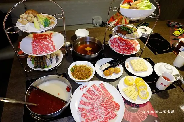 紅九九個人鴛鴦鍋 以正宗四川麻辣湯底,提供吃到飽的鴨血與豆腐,華麗的三層架菜盤,加上豐富多元的套餐內容、不用呼朋引伴令一個人也能獨享麻辣鴛鴦鍋的澎湃。紅九九個人鴛鴦鍋以個人鴛鴦鍋聞名,吸引不少藝人明星到訪,或是媒體都爭相報導。位於信義區林立的辦公大樓巷弄中,從中午營業到晚上11點,無論什麼時候,都可以一個人來吃麻辣鴛鴦鍋。紅九九個人鴛鴦鍋 新址可搭乘捷運到小巨蛋站,由5號出口步行6分鐘即可抵達。紅九九個人鴛鴦鍋 市府店在門口的圍籬上,以麻辣鍋湯底的食材組成了畫作,讓麻辣鍋為招牌的印象,深植人心。市府店已遷址至小巨蛋站附近。隔了許久才見面的姐妹,即便有隔板,也隔不了這些日子的想念及話語,吃著美味的食物還能聊聊天,這真是解了長久以來的苦悶啊!紅九九個人鴛鴦鍋 市府店備有個人座位區,即便是一個人用餐,桌面仍十分地寬敞,菜色擺滿也能用餐從容。紅九九個人鴛鴦鍋 另外備有三種特別的花椒粉,若是覺得湯底不夠辣,可以自行加到湯裡頭增加麻辣度。這是店家建議的沾醬最佳比例。麻辣湯的沾醬,是等湯底上了後再自行加到已放蒜苗及香油的小碟中即可。紅九九個人鴛鴦鍋的套餐,除了主菜肉品之外,另外還可選湯底、菜盤、拼盤、主食及甜點。華麗的三層架擺放了各種食材,這兩份的餐點是不是很豐盛?久違的餐廳內用,這整個令人心情大好啊!艾方妮選了黃金養生湯底及秘制火焰牛搭配麻辣湯底。紅九九個人鴛鴦鍋的黃金養生鍋是選用豬大骨、雞骨、雞腳熬煮,加入紅棗、枸杞、老薑、蒜頭,呈現出完美濃郁的湯頭。一起上桌的是麻辣湯底及高梁酒。將高梁酒倒在牛肉之上。接著高度酒精上點上火,立即竄出火苗。利用高度酒精來快炒牛肉,直到酒精揮發只留下酒香。在還沒開吃前,就令視覺先有了一番享受。此時再倒入麻辣湯底,香氣立即撲鼻而來。紅九九個人鴛鴦鍋的麻辣湯底附有鴨血及豆腐,這都是無限續的喔!軟香的鴨血及入味的蜂巢豆腐,都是吃麻辣鍋不能少的要角。紅九九個人鴛鴦鍋的麻辣湯底是採用二十種獨家漢方中藥,搭配中藥五行經長時間熬煮,重麻不重辣,湯頭喝來醇厚溫和不刺激,也可以指定喜愛的辣度。火焰牛肉在高溫炙燒後,染上酒香,並有著麻辣鍋底的辣麻香,牛五花的油脂變成香Q的口感,層次豐富了許多,相當可口!紅九九個人鴛鴦鍋的套餐中的菜盤可以綜合蔬菜盤及綜合菇盤二選一。綜合菜盤中有高麗菜、青江菜、白蘿蔔、香菇、木耳、海帶芽、金針菇、豆皮及蕃茄,都是新鮮的菜盤,沒有加工食品。姐妹選了綜合菇盤,共有五種不同的菇類。友人選的是和風蔬菜鍋底搭配麻辣鍋。紅九九個人鴛鴦鍋的和風蔬菜鍋,以數種當季蔬菜、水果熬製而成,沒有添加人工調味料。我們習慣用蔬菜鍋來煮蔬菜,這樣更顯湯頭鮮甜。紅九九個人鴛鴦鍋的套餐中,有拼盤三選一:綜合海鮮拼盤:蛤蜊、多利魚、草魚、鯛魚、鱸魚及干貝。綜合手作拼盤:有川丸子、蛋餃、香菇貢丸、排骨酥、魚餃、竹絲蝦餃及花枝漿。綜合滷水拼盤:大腸、牛肚及牛筋,這可是麻辣鍋不可或缺的食材,豈容錯過?我們習慣利用麻辣鍋來涮肉。紅九九個人鴛鴦鍋的肉盤都可以加價來增量60%,是肉控們的福音。紅九九個人鴛鴦鍋-大背肩牛肉套餐 $458以這樣的份量,加上海鮮拼盤,如此就是海陸大餐,竟然只要400多元?這個CP值很高啊!大背肩牛肉的油花豐富均勻鮮嫩不油,軟嫩中帶有嚼勁的雙重口感。大肩牛肉是來自於牛的肩胛部位,肩胛部位是牛有運動的部位,這類型的肉部烹煮時,要這注意千萬不要過熟,大概是5~7分最適合。紅九九個人鴛鴦鍋-活菌松阪豬套餐 $588松阪肉是豬的頸肉, 一隻豬只有二片,也就是俗稱的黃金六兩,特色就是油花分佈均勻。輕涮過的松阪豬,保留著Q彈的口感,麻辣湯汁更襯出豬肉的鮮甜滋味。綜合手作拼盤中的花枝漿真材實料,川丸子口感很好,排骨酥吸收湯汁後,也顯得多汁。海鮮的品質新不新鮮,入口便知,每樣都是鮮甜好滋味!綜合滷水拼盤建議在一開鍋時就下鍋燉煮,如此更能入味。經由長時間在麻辣鍋底燉煮後,該有的Q勁及嚼勁都沒少,和著麻辣香氣越嚼越有滋味。紅九九個人鴛鴦鍋-麻辣溏心蛋以麻辣湯汁煮成的溏心蛋,帶著香氣卻不致於太辣,半熟的蛋黃實在太誘人!紅九九個人鴛鴦鍋-三口川辛粉 $29/優惠價四川聞名遐邇的三口麵<一口香、二口鮮、三口辣>,以蒜頭、生薑及特製麻辣醬製成川辛粉,搭配Q彈的涼粉,夏天吃來很舒爽。紅九九個人鴛鴦鍋的主食,有白飯、手工拉麵、王子麵、寬粉、年糕五選一。我們選了手工拉麵及年糕。第一次在麻辣鍋店吃到年糕,煮好的年糕帶著麻辣香氣,軟Q好嚼好好吃!手工拉麵吸附了滿滿的湯汁,也是滋味十足。這天的餐後甜點是黑嫩仙草及烏梅凍。其實整個套餐下來,我們真的是飽到天靈蓋了,但甜點是另一個胃嘛,所以我們無條件完食!…查看更多