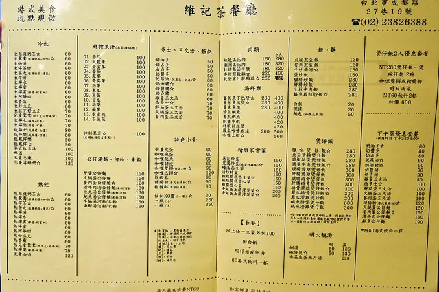 維記茶餐廳 (台北) 網址: https://s.openrice.com/cHRSm02D3m000 地址: 台北萬華區成都路27巷19號 電話: +886 +886223826388