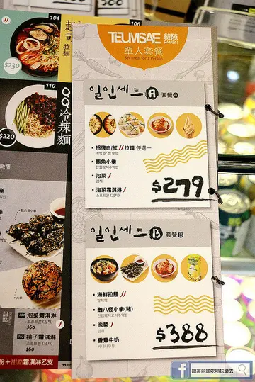 在韓劇裡面每次都看著男女主角大口吃拉麵您會不會想跟著來一碗吃吃呢?現在韓國第一品牌TEUMSAE縫隙拉麵,第一個海外門市登台囉不但原汁原汁讓你體驗道地的韓國味也特別研製一支泡菜霜淇淋讓您嚐鮮 一進門右牆面的投射燈牆大辣辣畫著一碗大拉麵還未入座就感受到一股韓流店內的工業鐵椅,色彩鮮明(此區為4人座位區)後方就是自助茶水區提供自行取用中間是一長排的大桌另一側是整排單人桌椅想學韓劇來自星星的你都敏俊和千頌依在南山公園鎖上的愛情鎖這裡也有情侶牆,情侶們可以帶著鎖頭與另一伴在這裡鎖住你們愛情 另外在店外也有一整面情侶牆(可惜回來爬文才知道,我沒拍到~~)愛情鎖價格沒細問,應該是190的樣子韓劇迷的捧友可以玩玩看店內採全自助式所以要先到櫃檯點餐結帳,拿號碼牌取餐在回收餐盤先來看看MENU點點餐吧! 6種口味的拉麵除了招牌白年糕不辣以外,其餘拉麵都可以選擇辣度TEUMSAE選用韓國的青陽辣椒 太陽辣椒和宣陽辣椒製做出獨家配方以韓國愛吃辣的程度,小辣可能是我們這邊的大辣櫃台下方有個冰櫃,裡面冰著各式韓國來的飲品和蔬菜棒我只認得香蕉牛奶XD除了香蕉牛奶 蘇打水 果汁還有韓國啤酒也是人手ㄧ瓶(未滿18不得飲酒,喝酒不酒駕,酒醉不開車)各自點完餐點後就拿著號碼牌,到坐位上等燈亮之後準備取餐還有還有這個可愛的手機座,讓你在吃拉麵的同時也能讓你訊息不間斷(這是不好的習慣)(誤)XDD 蔬菜煎餅內有韭菜 洋蔥 紅蘿蔔麵衣沒有很厚,口感吃起來有點像煎蛋在韓劇裡面常看到的韓式飯卷這裡也有販售口味有招牌 鮪魚 泡菜 豬肉和起士牛肉韓式飯捲跟日式壽司不同,使用的是芝麻 鹽 白麻油調味而成 點了起司牛肉飯捲,飯粒偏鬆軟一些友人點的蔬菜拌冬粉,感覺應該是不錯吃炸年糕單吃就沒什麼味道,要沾著醬汁一起吃比較夠味韓式烤牛肉+蔬果棒把烤牛肉放在生菜上加上紅蘿蔔和小黃瓜放上一點韓式辣醬標準的韓式吃法 韓式炸雞內含炸雞塊 炸馬鈴薯塊和炸年糕 招牌紅年糕拉麵使用韓國特殊豆粉為基底,用韓式特調的辣椒做湯頭因為湯頭是紅色所以取名紅年糕拉麵小芬叫的這碗是小辣,所以湯頭顏色沒那麼紅但這小辣的程度卻足以讓人辣翻天,吃得我眼冒金星直冒汗喜歡挑戰辣度的朋友應該會很愛,可以嚐嚐看韓國拉麵的麵條Q度比日式拉麵來的Q一上桌就得趕緊吃,可別拍照太久,麵條可是很會吸附湯汁的這碗是白年糕拉麵沒有辣度但有點胡椒辣不敢吃辣的朋友建議點白年糕海鮮韓式拉麵(不辣)年糕和海鮮因為和拉麵一起煮海鮮都沉在碗底了 特地得把它們撈上來讓朋友看看裡面有些什麼海鮮料炸螃蟹(半隻) 孔雀蛤 蝦子 透抽和年糕部隊鍋韓式拉麵這碗我沒吃到一旁還有香腸火腿朋友點的薯餅拉麵+起司據她說加了起司的拉麵口感比較滑順,比較沒那麼辣但看她吃到滿臉通紅的樣子肯定也是辣翻了XDDTEUMSAE縫隙拉麵總廠也為了進軍台灣市場特別研發全世界第一支泡菜霜淇淋給台灣消費者嚐鮮吃完正餐當然也要來支泡菜霜淇淋吃吃看淡淡的泡菜香有著辣辣的口感,口味上一點都不違和感覺還不錯想挑戰您的味蕾嗎??趕緊來嚐嚐地獄級的辣度讓你辣到舌根麻痺,以身試辣才知道有辣到以上提供給喜歡吃辣的朋友參考(不敢吃辣得請點不辣的喔))…查看更多