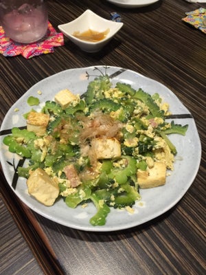小菜 / 山 苦瓜 炒 豆腐 蛋 / 牛舌 / 玉子燒 / 竹莢魚 / 沖繩炒苦瓜 / 沖繩煎餅 / 沖繩麵 / 味噌黃瓜 / 泡菜炒豬肉 / 炒麵 / 花生豆腐 / 花枝納豆 / 炸牡蠣 / 炸豬肉串 / 海ぶどう / 烏龍燒灼 / 高砂魚 / 甜點 / 滷五花肉角