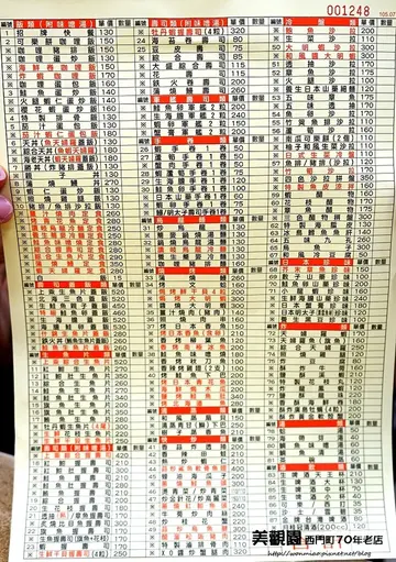 年輕在台北讀書的時候我們常常會來西門町玩耍,因為學生年代經濟條件有限,同學們一般都是來中華商場和西門町一帶走走和看看電影,上館子機會不多。50年過去了,朋友約來這個差不多已經有80年歷史的日料店用餐,讓我感觸良多。美觀園有兩個店,聽說是由兩兄弟分別管理。一個店在峨眉街36號,一個在斜對面47號,我錯誤地先走到36號店看朋友不在,問服務員才知道對面47號才是朋友訂桌的地方。47號店看起來比較寬大一點,上二樓後朋友們都到齊了。他們點了厚切生魚片拼盤、大蝦天婦羅、壽司拼盤、油炸豬排、明太子煎帶子,再加上地道台灣料理的蘑菇炒蚵仔、蒸讓絲瓜等等。這個日台融合店的出品味道很不錯,服務也很好,讓人有再來賞鮮的衝動。我啤酒粉絲,最欣賞是他們有1.8公升的生啤供應,當然你可以選擇本地18天或麒麟啤酒。…查看更多