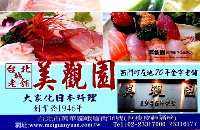 年輕在台北讀書的時候我們常常會來西門町玩耍,因為學生年代經濟條件有限,同學們一般都是來中華商場和西門町一帶走走和看看電影,上館子機會不多。50年過去了,朋友約來這個差不多已經有80年歷史的日料店用餐,讓我感觸良多。美觀園有兩個店,聽說是由兩兄弟分別管理。一個店在峨眉街36號,一個在斜對面47號,我錯誤地先走到36號店看朋友不在,問服務員才知道對面47號才是朋友訂桌的地方。47號店看起來比較寬大一點,上二樓後朋友們都到齊了。他們點了厚切生魚片拼盤、大蝦天婦羅、壽司拼盤、油炸豬排、明太子煎帶子,再加上地道台灣料理的蘑菇炒蚵仔、蒸讓絲瓜等等。這個日台融合店的出品味道很不錯,服務也很好,讓人有再來賞鮮的衝動。我啤酒粉絲,最欣賞是他們有1.8公升的生啤供應,當然你可以選擇本地18天或麒麟啤酒。…查看更多