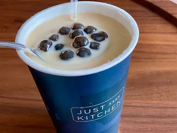 台灣的新創企業軒饌廚坊【Just Kitchen】它沒有「餐廳」,專營「外送」,UberEats、Foodpanda外送平台皆可點餐。【胡同燒肉丼 ✕ Just Kitchen】燒肉丼飯包裝細心有質感,燒肉好吃、醬汁鹹香有味,有牛肉、海鮮主餐可選擇,配菜繽紛,均衡用心,份量充足,會想回購! 台灣的新創企業軒饌廚坊【Just Kitchen】它不提供內用、專營「外送」生意。做法是,在中央廚房完成9成以上的餐點製程,再將半成品送到各地衛星廚房,當外送訂單一來,員工僅需要組裝或復熱,就能在3分鐘內出餐。UberEats、Foodpanda外送平台皆可點餐。看到用心包裝的紙袋和餐盒,先給它+5分! 【特享御饌舒肥無骨牛小排餐盒】$320【御上蒲燒鰻魚餐盒】$288 【特享御饌舒肥無骨牛小排餐盒】$320舒肥無骨牛小排、青花菜、涼拌豆芽菜、辣蘿蔔干、洋蔥絲、半顆溏心蛋、胡同蔥鹽、胡同特製淋醬及紅藜麥雙色飯。有醬汁,但醬汁量稍嫌不足,有晶瑩剔透的溏心蛋,和爽解油膩的時蔬。 【御上蒲燒鰻魚餐盒】$288薄燒鰻、青花菜、涼拌豆芽菜、辣蘿蔔干(小辣)、洋蔥絲、半顆溏心蛋、胡同蔥鹽、胡同特製淋醬及紅藜麥雙色飯。 【皇家鍚蘭珍珠奶茶】500ml/$60絲滑的奶香與柔和的茶韻,搭配黃金比的糖度(總糖量為25g, 甜度無法調整,但冰度可以選擇少少冰、去冰)咀嚼珍珠來療癒身心。 【齒留茉香珍珠奶茶】500ml/$60清新的茉香化作柔順的綠奶茶,(總糖量為25g, 甜度無法調整,但冰度可以選擇少少冰、去冰)珍珠Q彈度表現不差。平常外送不要餐具的人記得要索取珍珠奶茶吸管,不能用湯匙喝也是蠻…! 《蛋寶543》適合平時不常開火的人,叫個外送來吃吃,記得外送要索取餐具與吸管!【胡同燒肉丼 ✕ Just Kitchen聯名餐盒】表現不錯,下次看到這樣的聯名會想再回購! 查看更多