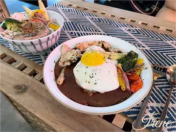 永和地區有很多很不錯的早午餐這天來到這家很特別現在台北要找可以吸菸的餐廳其實很難這家有吸菸室 自成一個小區域對於有抽菸的朋友 算是一個福音^^"(我個人不抽菸,這天坐在一般座位~不會覺得煙味很明顯) 整個用餐空間其實蠻寬敞的我個人覺得蠻舒服的 Menu 香煎雞肉咖哩飯240元BBQ手打漢堡排飯180元 我的咖哩飯上面有蠻多蔬菜的飯的份量也很多 男生可以吃飽咖哩的味道我蠻喜歡可惜雞肉用的是雞胸肉 口感有點偏柴 很可惜ㄟ 友人的漢堡肉排配菜跟我的差不多漢堡肉排我覺得表現也是略普通沒有想像中的多汁只能說食材味道不錯 但是本身的口感很普通^^" 冰拿鐵&冰奶茶飲料這裡的表現得不錯 我覺得蠻好喝滴 這天看到大部分客人點的都是早午餐XD可能早午餐比較是這裡的招牌啦我們點的正餐 我覺得味道還不錯但是食材的口感有點影響我的感受用餐環境我是覺得還不錯或許下次有機會再訪 我會試試早午餐囉!^^ …查看更多