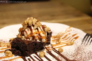 交通方式:捷運雙連站1號出口步行4-6分鐘最近週末很有口福一直在養肉,兩周前接獲邀約來到中山北路二段的艾倫狄克森從雙連站1號出口走來只有幾分鐘,初抵達時以為自己走錯地方了看上去像極了我平常會去的咖啡館,想不到是正是艾倫本人XD艾倫狄克森是一間有著美式工業style、乍看像咖啡館,實則以供應漢堡、蛋捲、義大利麵、排餐與披薩等等為主的美式餐館餐點分量不僅有誠意且色香味俱全,看起來與吃起來是同樣美味因此我決定直接破題,依個人喜愛程度推薦:香草烤半雞➠雞肉青醬義大利麵➠艾莉絲漢堡甜點與咖啡也十分具水準,我在整理照片時又被燒了一次黑牆上的大面積塗鴉有著濃厚街頭色彩,注意到上頭寫著since 2009天啊本以為是來到一間新開幕的餐館,想不到艾倫狄克森成立至今已有七個年頭(我還算是個台北人嗎?)唯一的四人桌位可獨享寬敞的前院空間,若晚上來喝個兩杯應該是相當愜意(我真的不是酒鬼)Wow~入內後直覺會是我喜歡的Loft氛圍紅磚牆、鎢絲燈、鐵椅,還多了些復古懷舊店裡燈光柔和,沒有工業風的冷調,反而感覺溫馨熱絡仔細看,這排桌子竟然都還有抽屜,像極了小時候的課桌椅~哈!整體格局方正、空間頗為寬闊,唯右邊沙發位的桌距較窄所有座位都是開放式,沒有提供包廂入口處設有高腳椅吧台位,座位旁都貼心設置了插座,wifi也十分順暢愛喝啤酒的捧由要把握happy hour,在特定時段內所有啤酒買二送一唷 艾倫狄克森Menu連結除了艾倫狄克森主廚套餐之外,其餘餐點都可以另外加價升級成套餐+90(湯+飲料);+125(湯+料+沙拉);+165(湯+飲料+沙拉+甜點)艾莉絲漢堡$280首先品嘗經典漢堡系列-艾莉絲漢堡,據說是店裡很受歡迎的漢堡5oz全牛肉漢堡排、瑞士起司、奶油甜洋蔥、紫洋蔥、野菇、薯條、生菜、番茄生菜番茄另外放一旁是為了不破壞其清脆口感,可以自行決定要單獨食用還是夾入漢堡內麵包表面留下淺淺的格狀烤痕,趁熱食用口感酥軟瑞士起司的奶香與甜洋蔥的清甜爬滿每一根野菇,口味偏甜多汁,十分juicy起司、野菇、洋蔥三種食材的搭配充分展現其氣味與甜味的特性,口感豐富、氣味香甜單單品嘗漢堡排反而顯得普通,艾莉絲漢堡醬汁甜度較高,應該是老少咸宜的選擇炸至金黃的細長薯條最好趁熱食用,口感酥脆好吃雞肉青醬義大利麵$260本人是麵食控,一定要大推這份雞肉青醬,歐~依~系暫且不論色澤誘人的烤雞腿排,麵條上那一絲絲白是現刨帕瑪森起司,有了它風味更盛美味的另一關鍵是使用西班牙初榨橄欖油,健康天然!以前我很討厭青醬口味的任何食物,常常吃到氣味過重或是過鹹的sauce或是整盤麵除了青醬沒有別的味道,太單一我也不喜歡(好吧是個人問題=_=)這一份雞肉青醬義大利麵完全符合我心目中的味道香氣是一層又一層散發出來,醬汁不算濃郁也不過淡,穠纖合度很合我意除了帕馬森起司還撒了一點辣椒粉,真是好好吃啊!烤雞腿排的香氣與肉質都沒話說,推啊!香草烤半雞主廚套餐$480主廚套餐已經包含麵包、湯、沙拉、飲料、甜點,份量足以兩人分食烤半雞以歐式香料醃製再先炸後烤,完整封鎖肉汁不得不稱讚烤雞色澤令人食指大動,如此美味擺在眼前還不能直接開動簡直是逼死我另附起司薯條與燉蔬菜,以及店家自製番茄熬醬拿我的拳頭當比例尺,這size對女生來說根本就烤全雞了啊XD色香具備,趕緊來看看味道如何!!啊啊啊啊啊看到沒有看到沒有!!噴汁了噴汁了啦切開之後香氣更上一層樓,實在是忍不住了><質地細嫩多汁的雞肉與充斥碳烤香的雞皮一同入口,盡情享受咀嚼帶來的美妙肉食主義者必點呀!!!想變換滋味可以沾取番茄熬醬,微辣口感好好味套餐麵包~此時已經飽到喉嚨實在吃不下了凱薩沙拉搭配紅酒醋醬相當清爽開胃,莫名其妙就吃完了@@(不是很飽嗎?)番茄蔬菜湯給料大方,湯頭清甜套餐甜點焦糖布朗尼佐香草冰淇淋毫不馬虎,溫熱巧克力醬緩緩自布朗尼流出,超美味!拿鐵咖啡口味香醇,口感比平常喝的拿鐵厚一些,拉花也美完食心得:艾倫狄克森所提供的餐點與空間整體而言令人滿意照個人喜好我是最推薦義大利麵與烤半雞,色香味俱全,水準不凡單看菜單覺得價位有些高,但實際吃過後覺得物有所值、價位合理餐點種類豐富多樣,從早午餐吃到晚餐不是問題,喜歡小酌兩杯的朋友也能滿足需求最後小小建議,因為套餐份量真的不小,女孩子的話兩人分食一份套餐會比較剛好喔就以上,慢走不送啦…查看更多